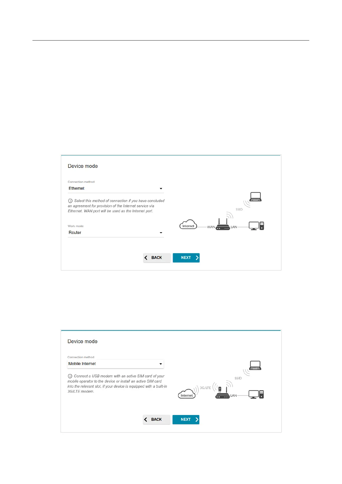 In order to connect your device to the network of a 3G or LTE operator, on the Device mode