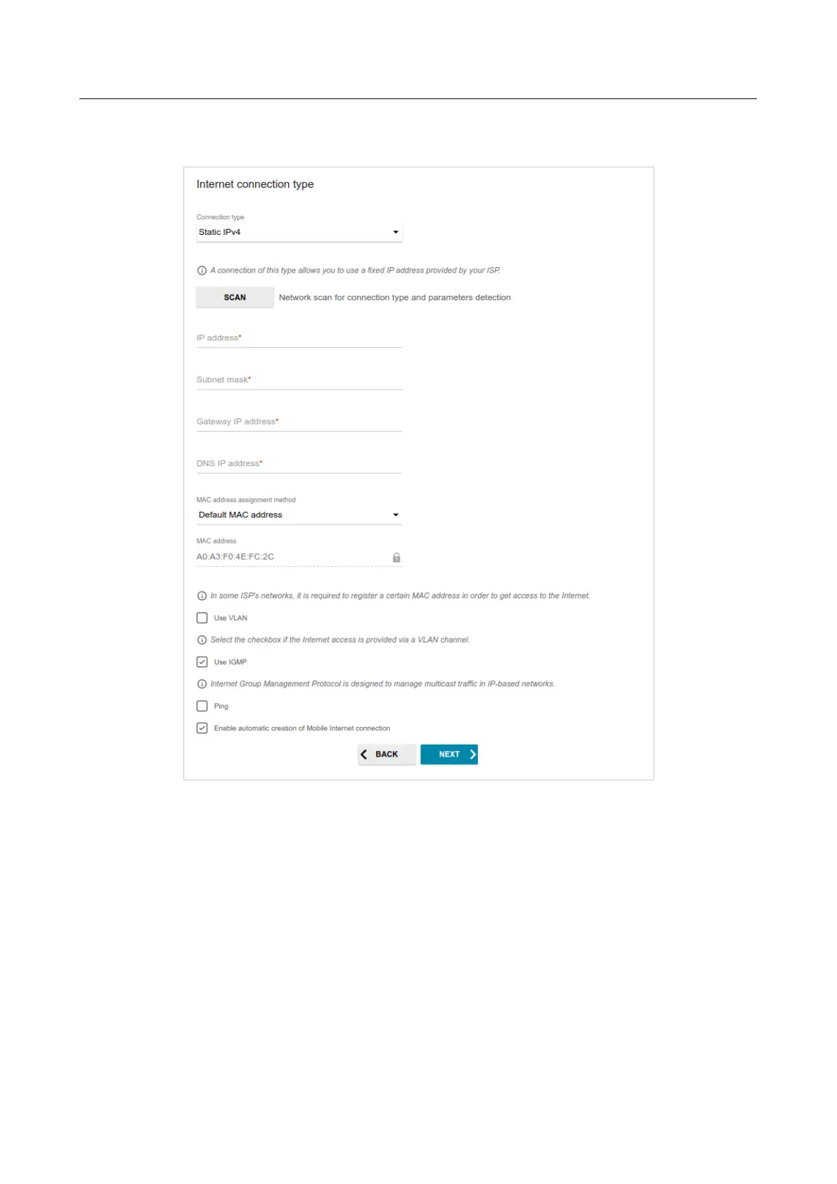 Figure 46. The page for configuring Static IPv4 WAN connection.