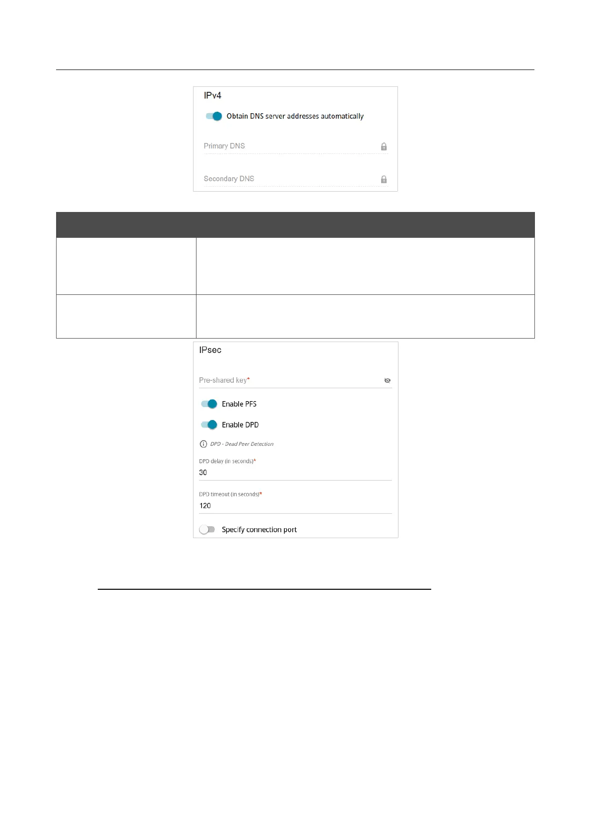 Figure 80. The page for creating a new L2TP over IPsec connection. The IPsec section.