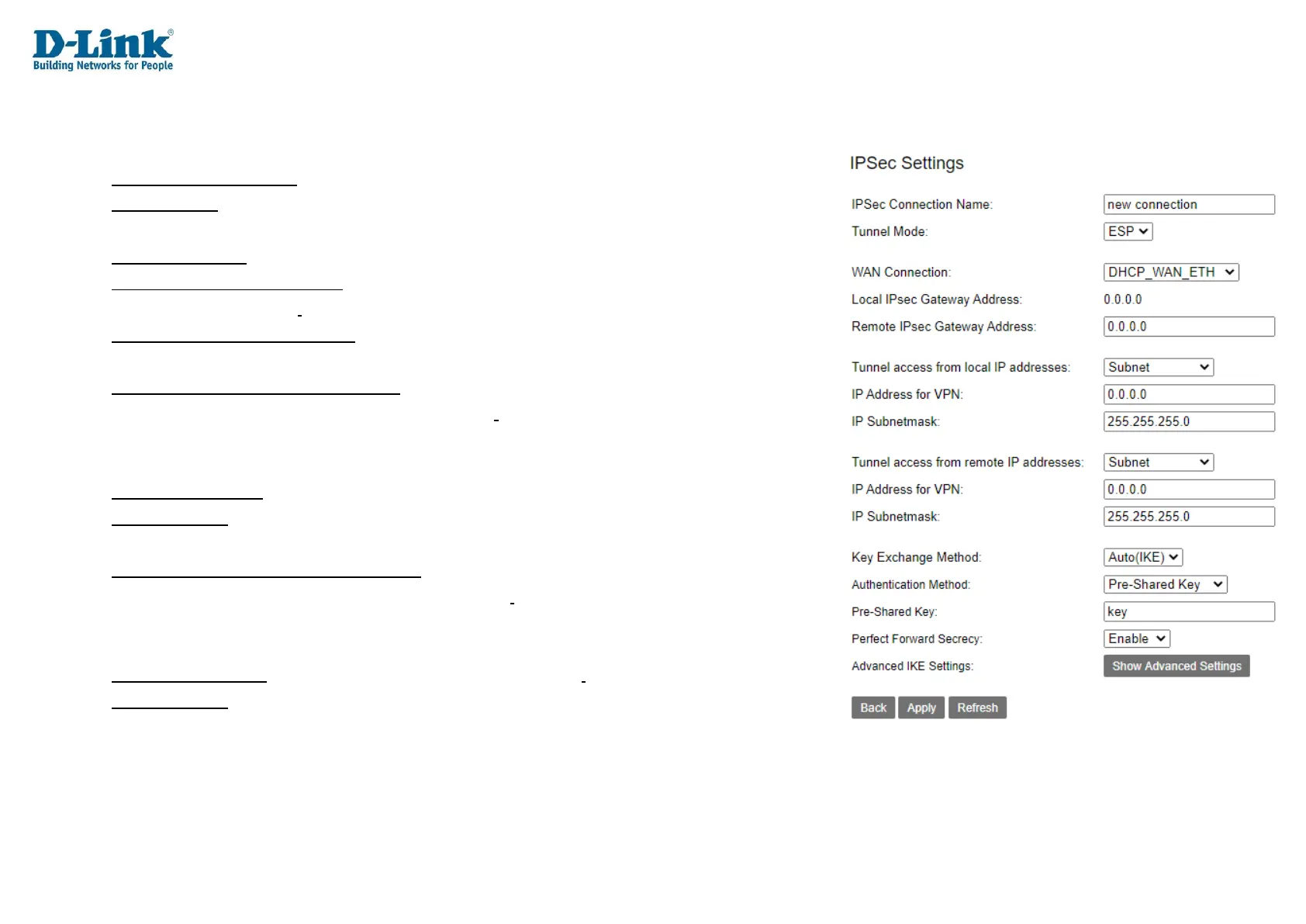 WAN Connection: The WAN connection to use with the IPSec tunnel.