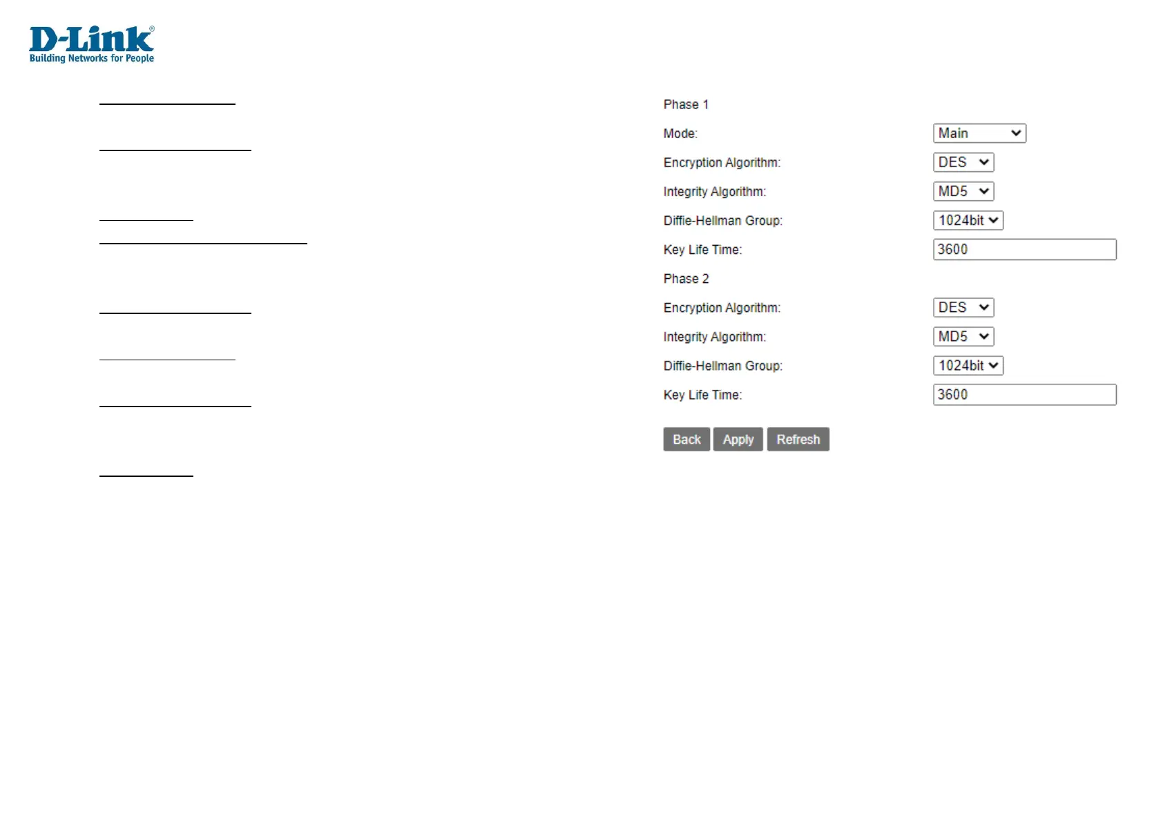 Diffie-Hellman Group: The Diffie-Hellman Group key size to use with the IPSec