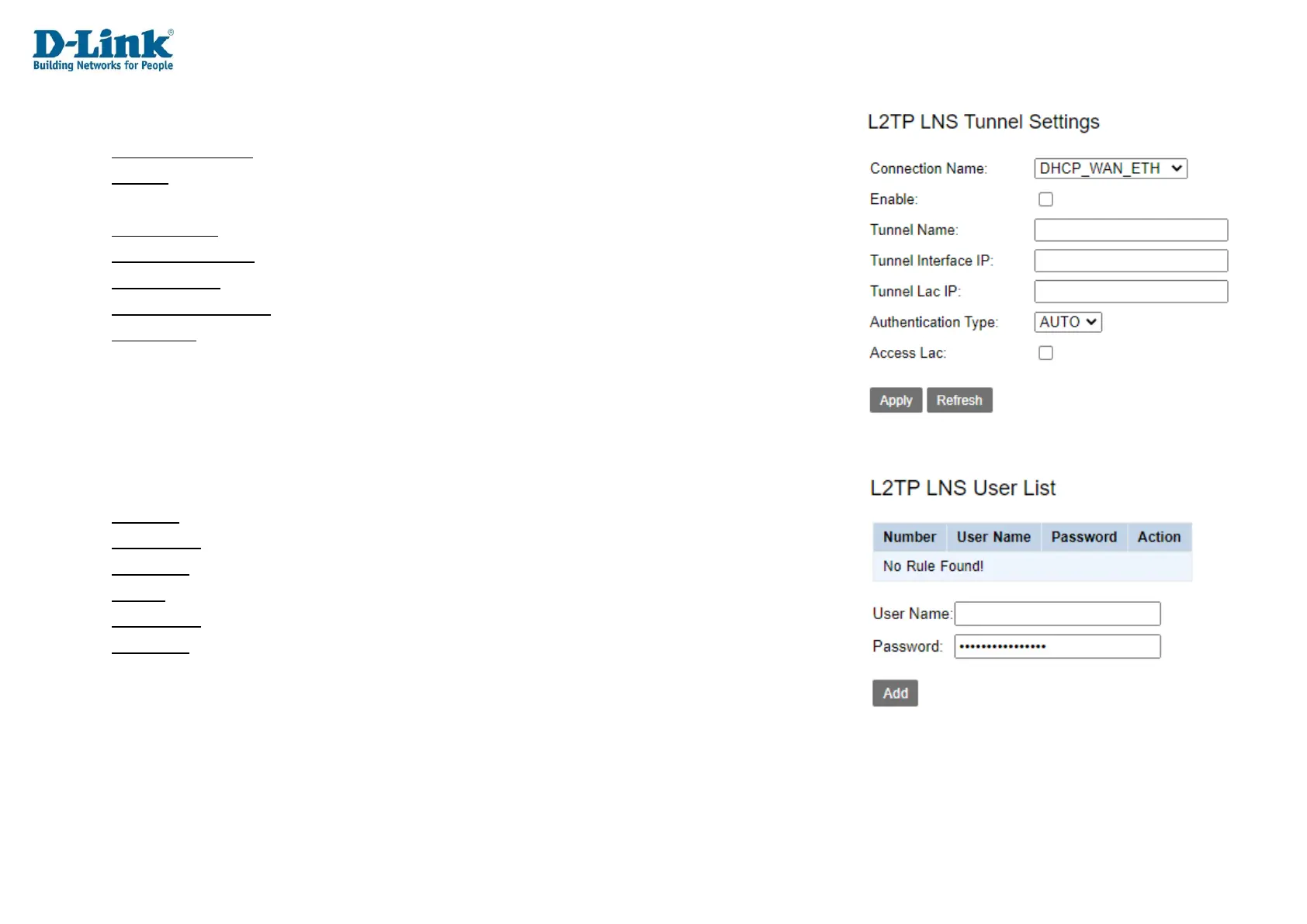 L2TP LNS Tunnel Settings