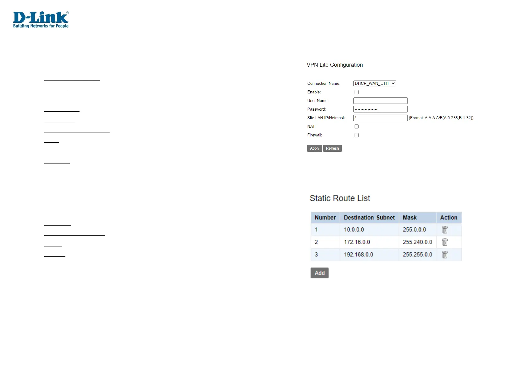Password: The password for the VPN Lite Configuration.