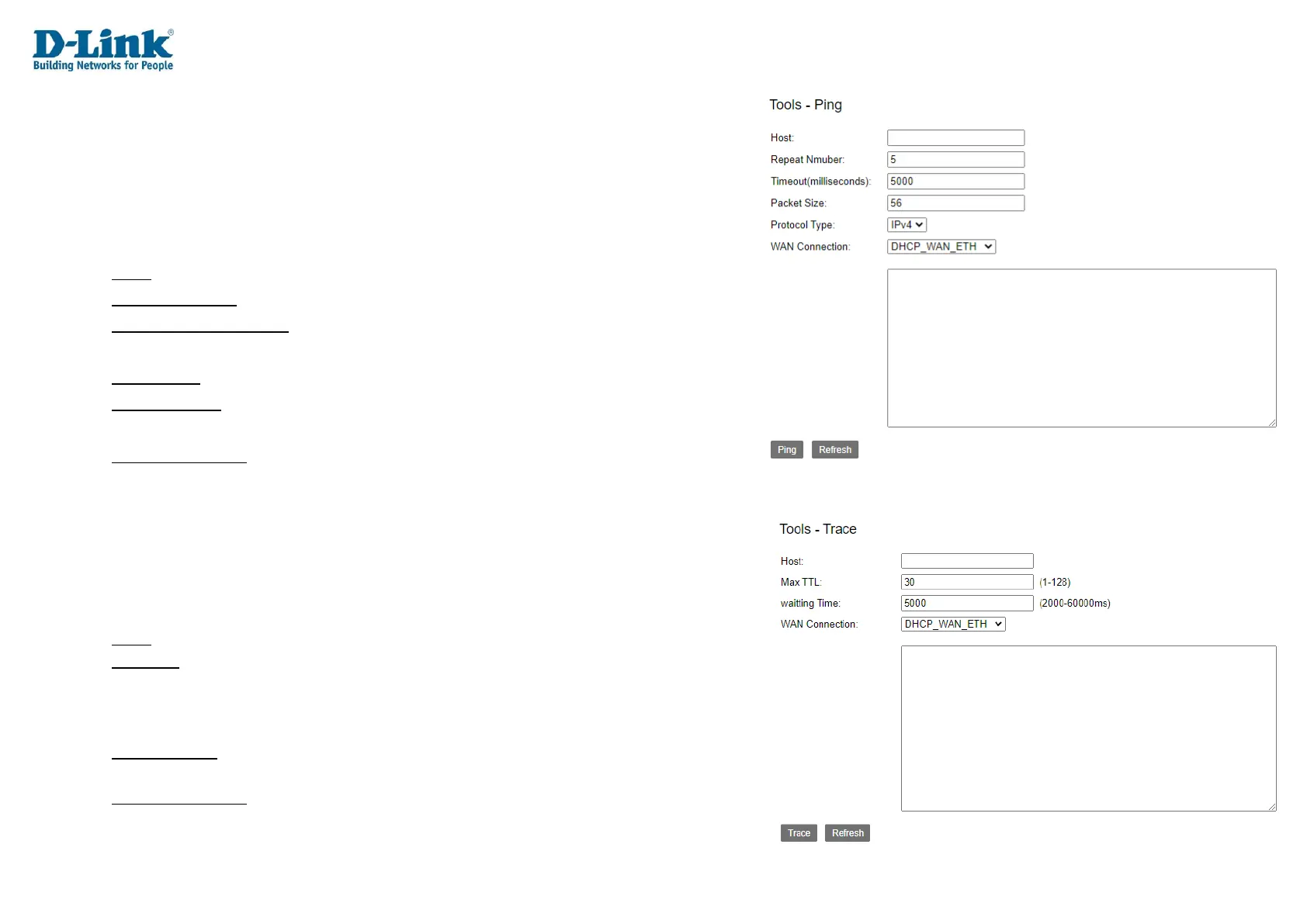 Click Trace to perform the traceroute and click Refresh to refresh the page.