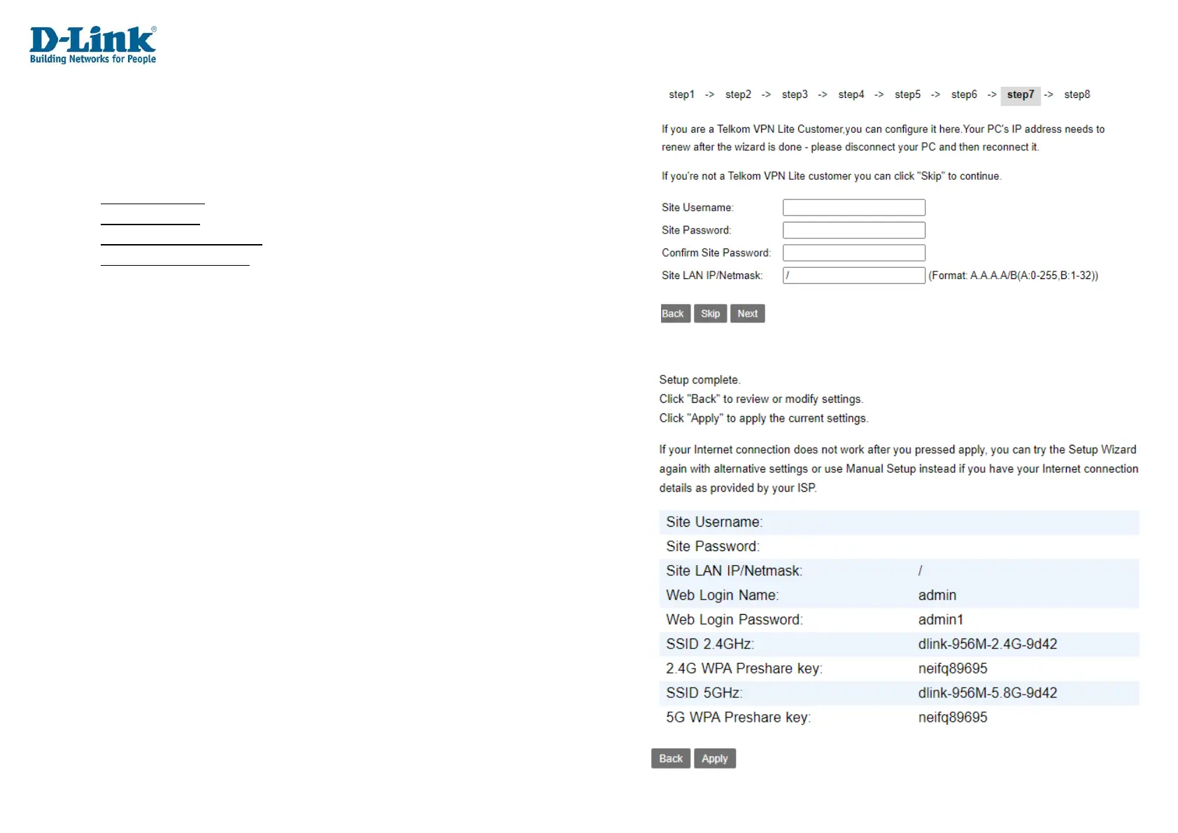 Password and Site LAN IP/Netmask to connect to Telkom VPN lite