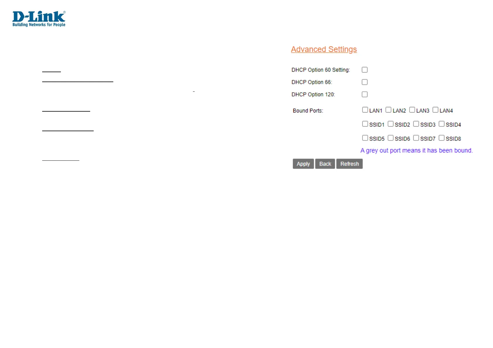 service type. Tick the LAN or SSID ports to bind these ports.