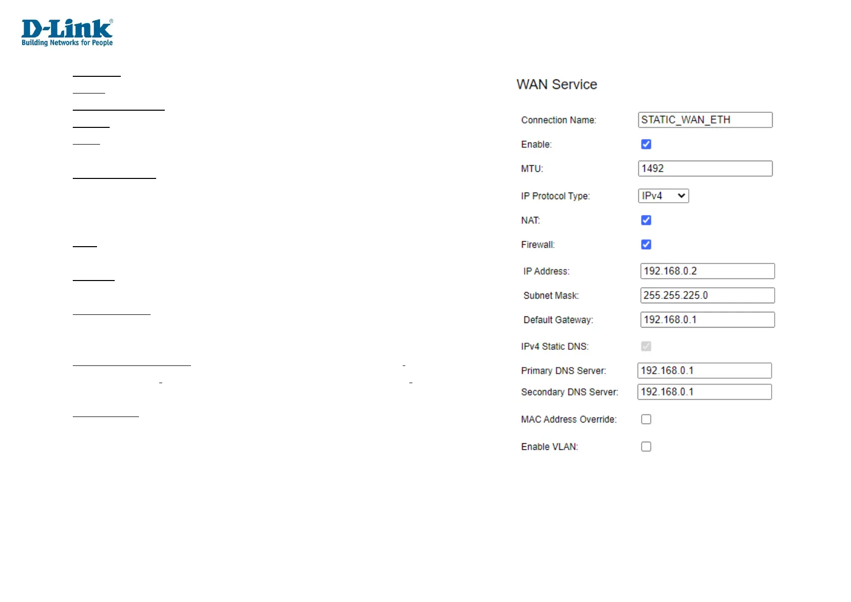 Enable VLAN: Whether to enable or disable VLAN settings on the WAN connection.