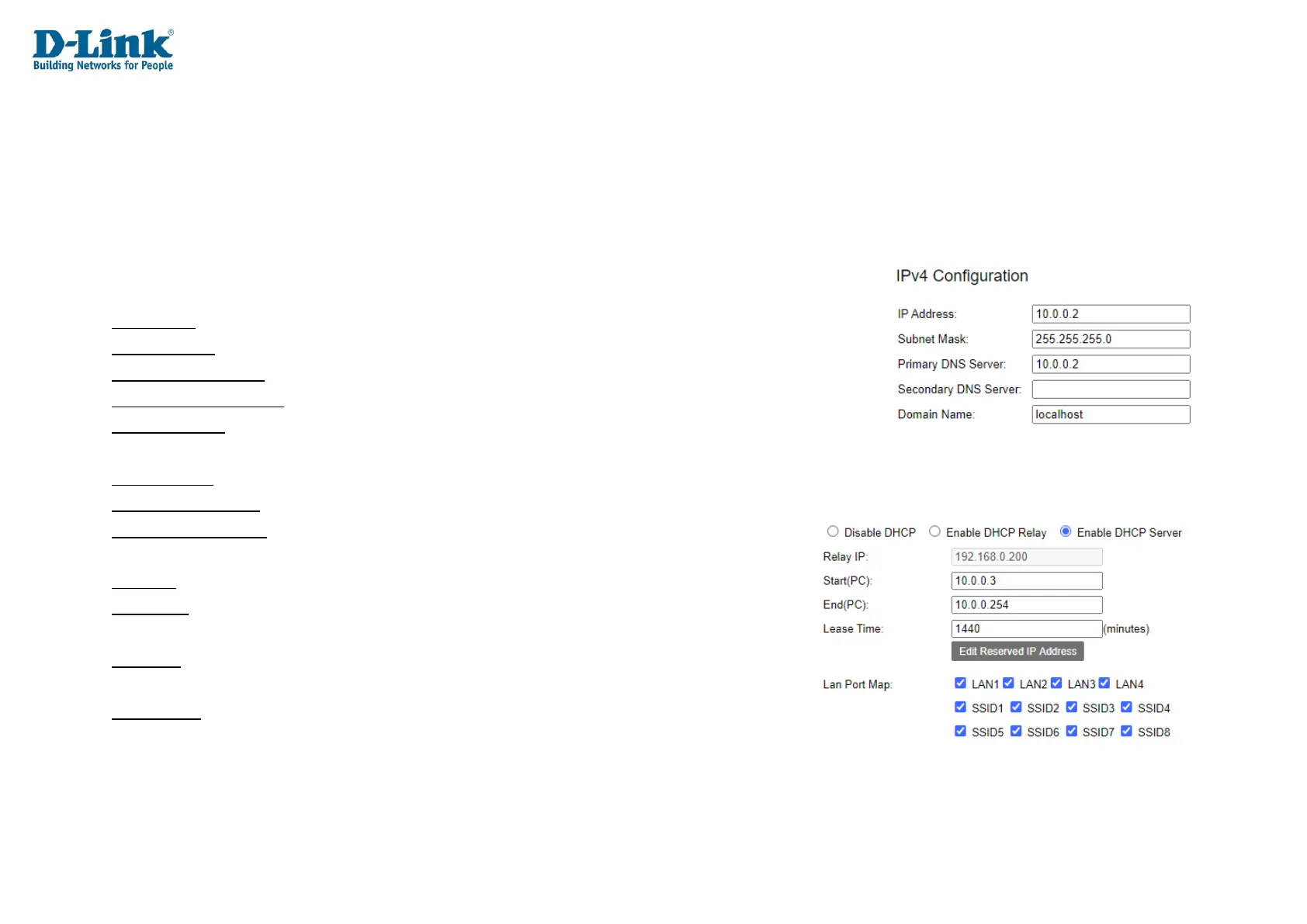 This allows you to set the IP address settings and DHCP options for IPv4.