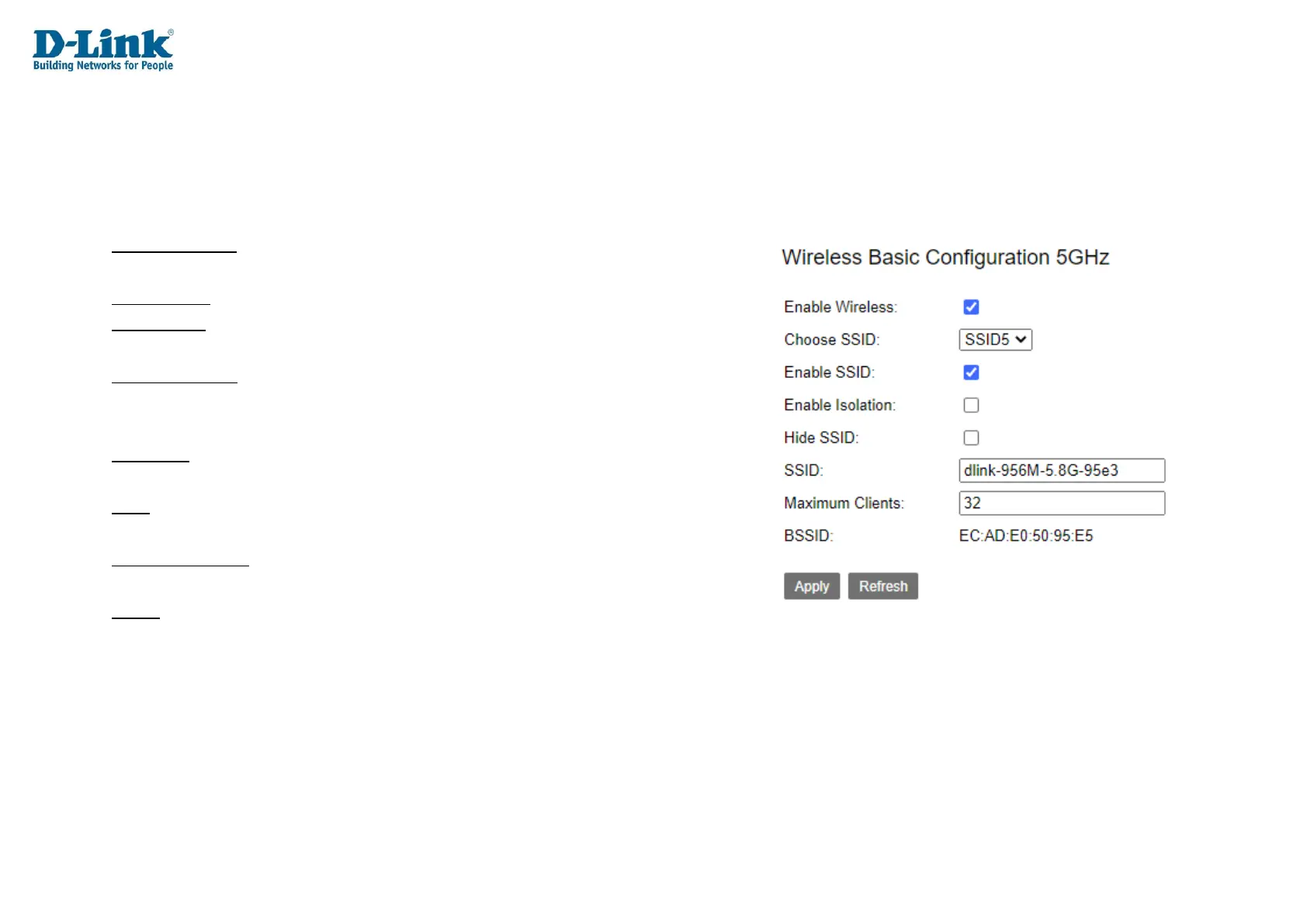 Wireless Basic Configuration 5GHz