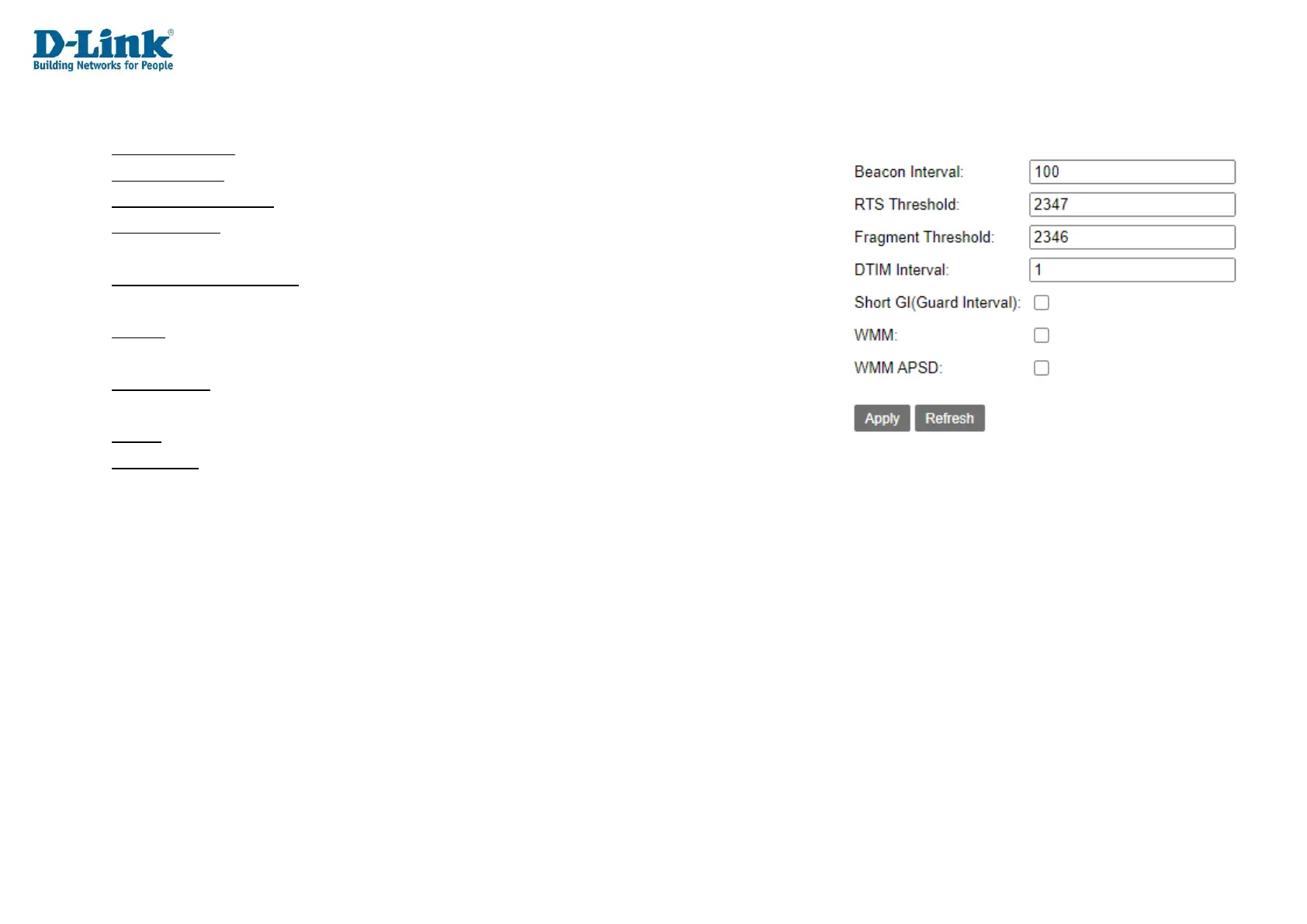 Beacon Interval: The interval between SSID beacon broadcasts. The default is 100.