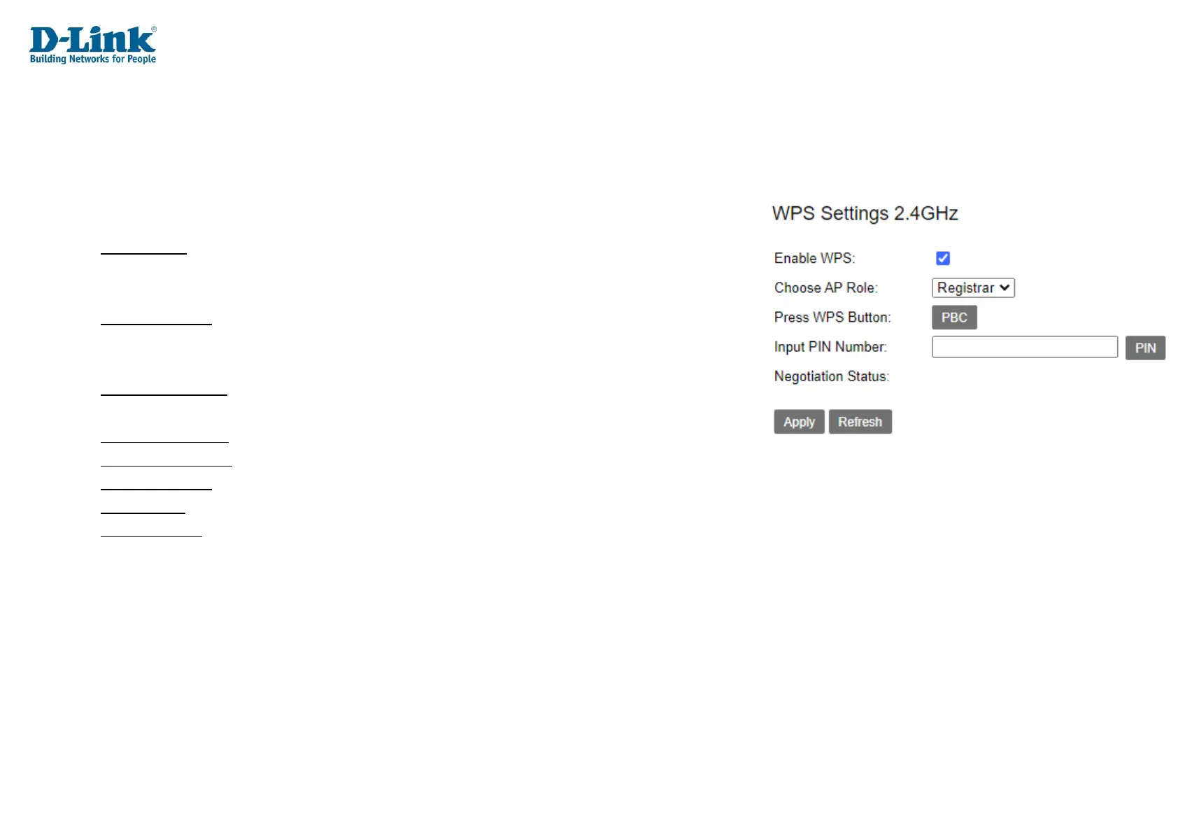This allows you to set Wi-Fi Protected Setup (WPS) settings for the 2.4 GHz wireless band.