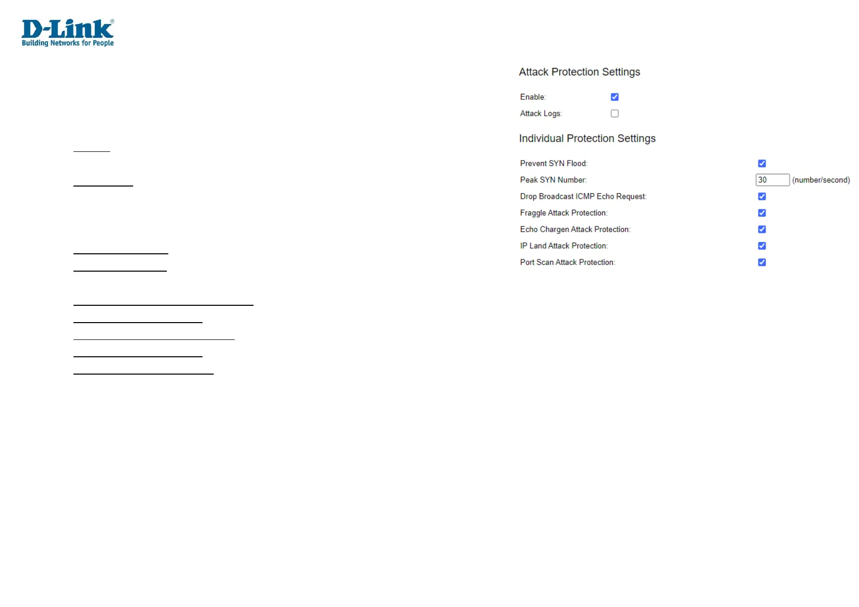 This allows you to set up Denial of Service (DoS) prevention rules on the DWR-957M.
