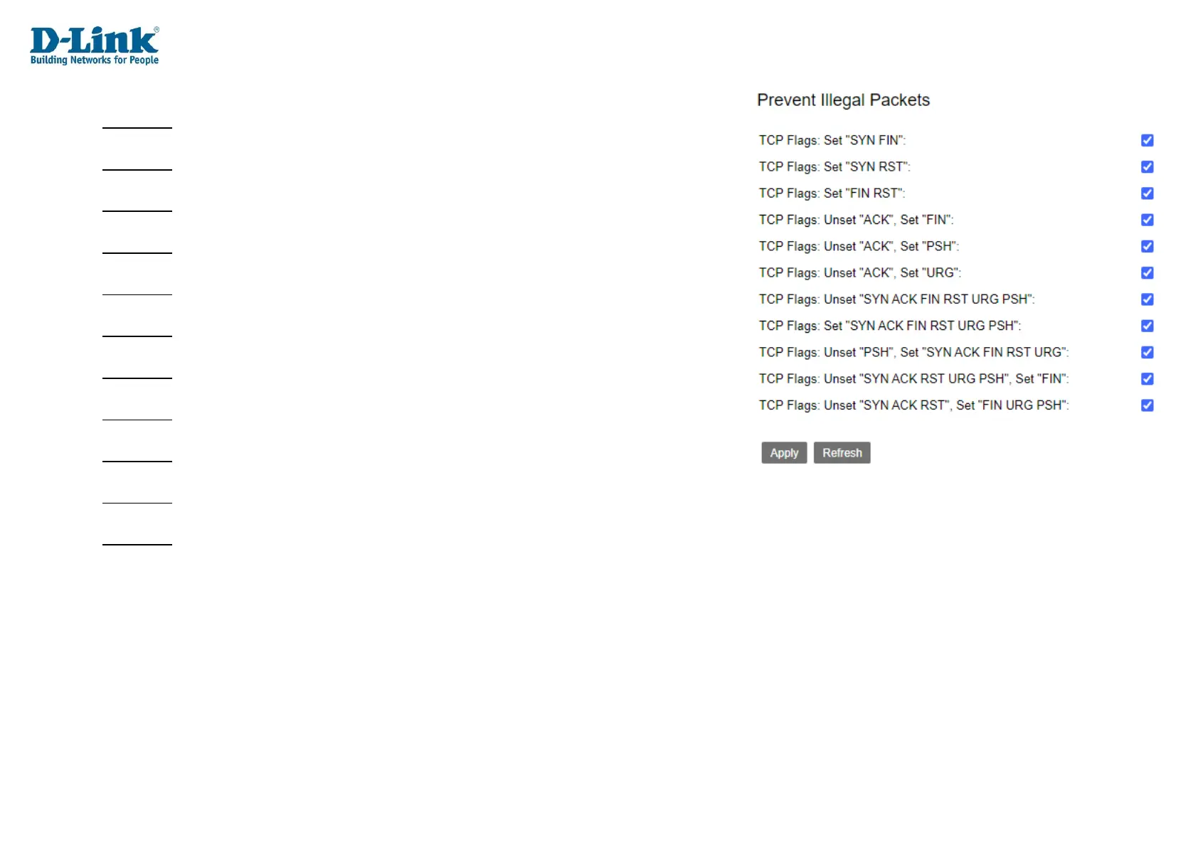 TCP Flags: Set "SYN ACK FIN RST URG PSH": Whether to enable or disable preventing illegal
