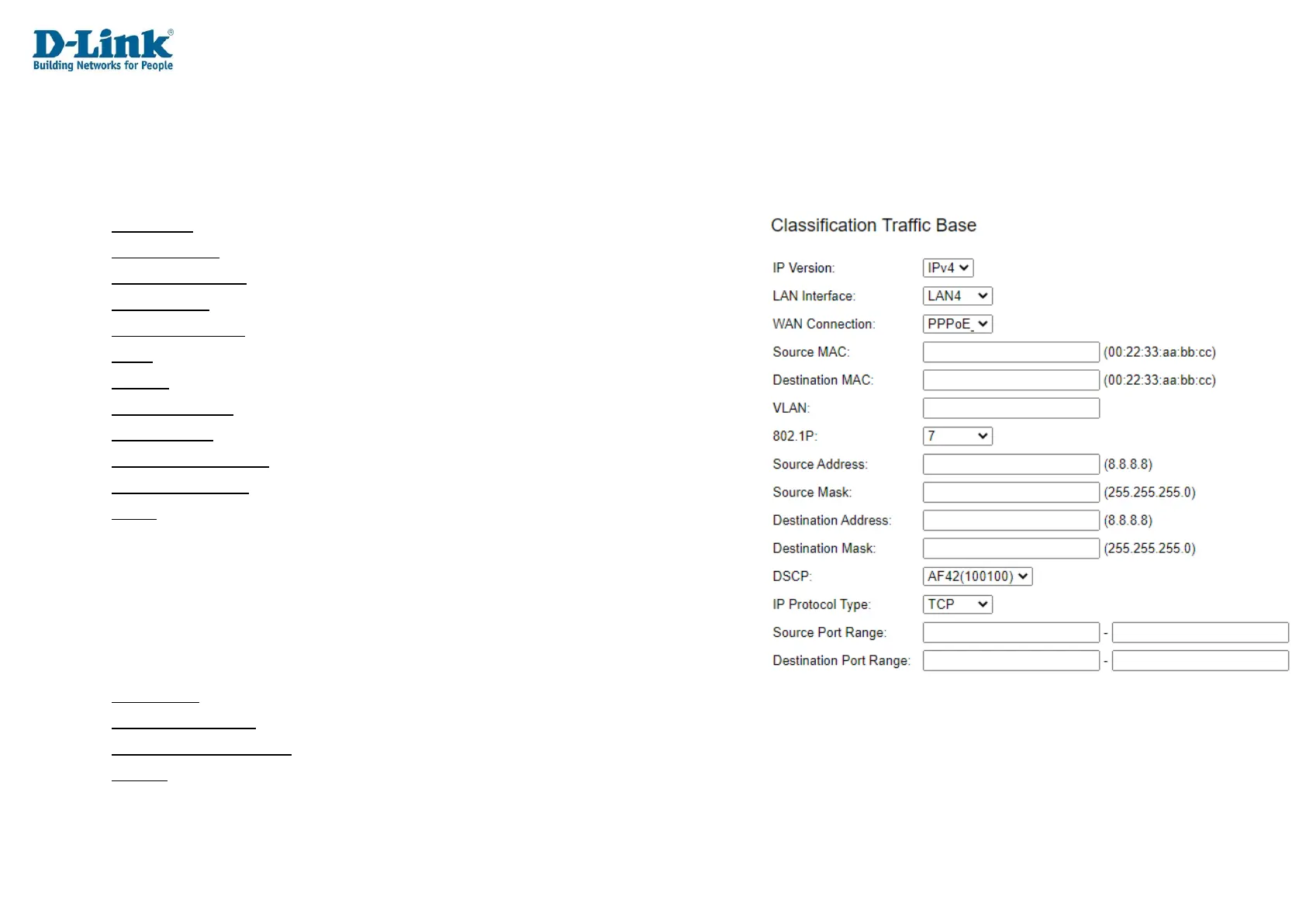 Here you can set the different mac address ot interface for the QoS to use as well as the DSCP, IP Protocal and 802.1P.