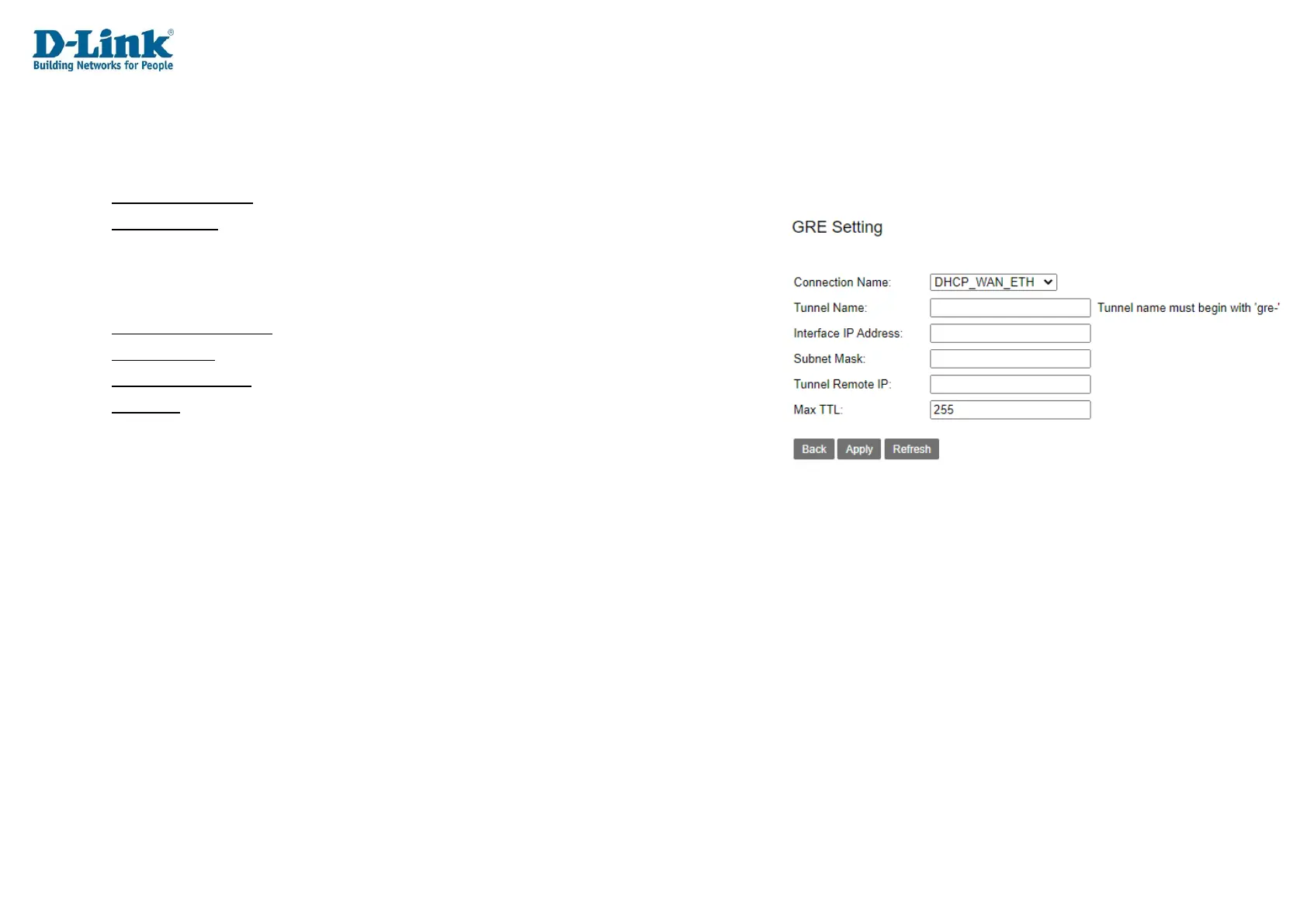 Max TTL: The maximum Time to Live (TTL) of the GRE tunnel packets.