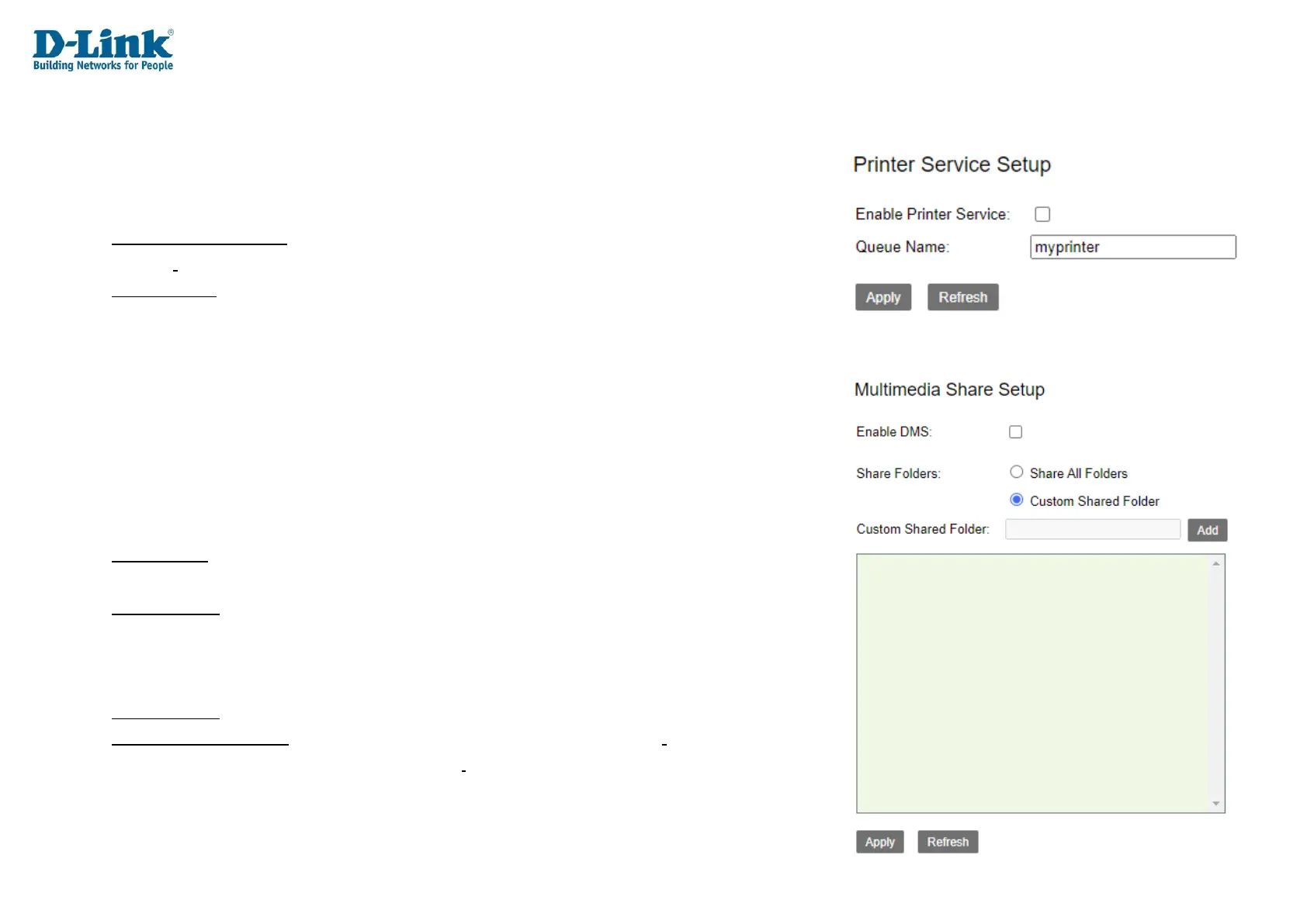 Custom Shared Folder: The custom shared folder to share using the DMS service.