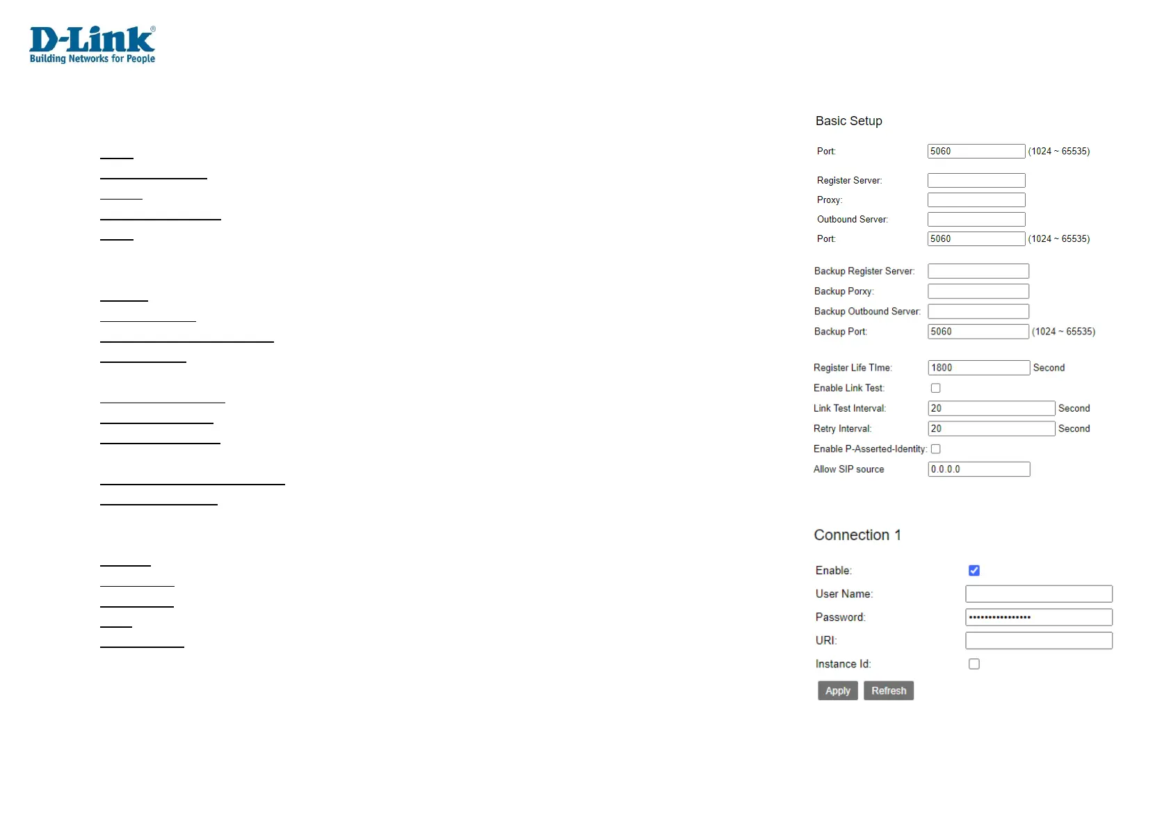 Password: Enter the password as provided by your VoIP/SIP provider.