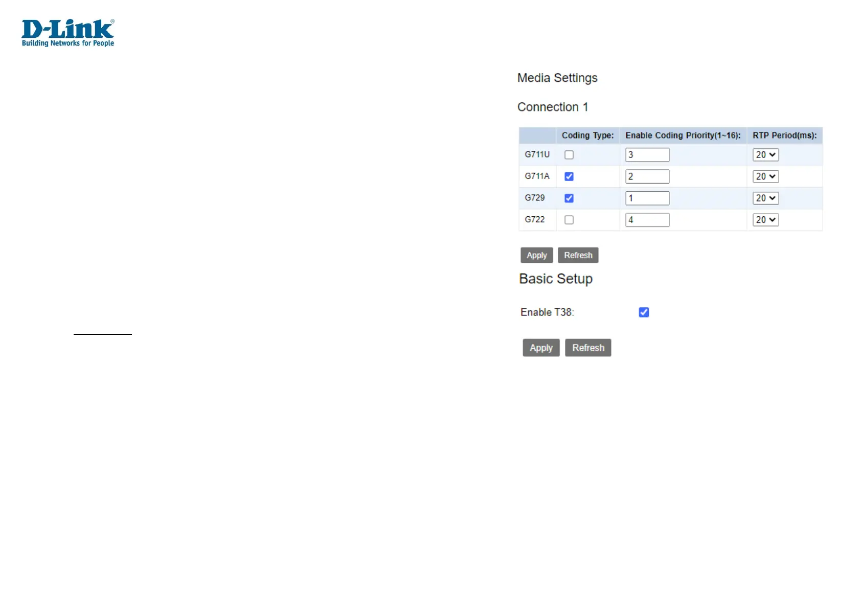 Enable T38: Click to disable fax protocol. This will prevent the device to look for fax