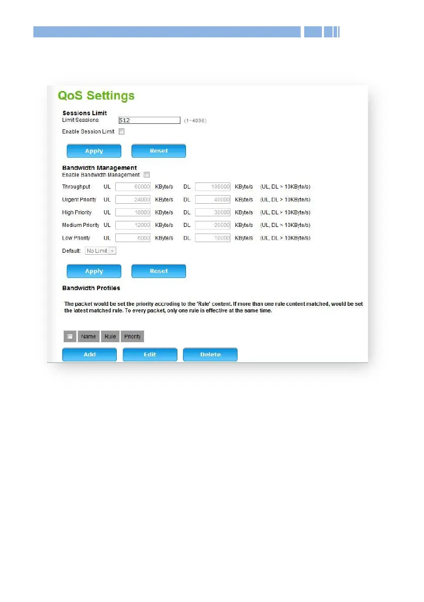 The QoS function controls the rate and priority of the traffic on your