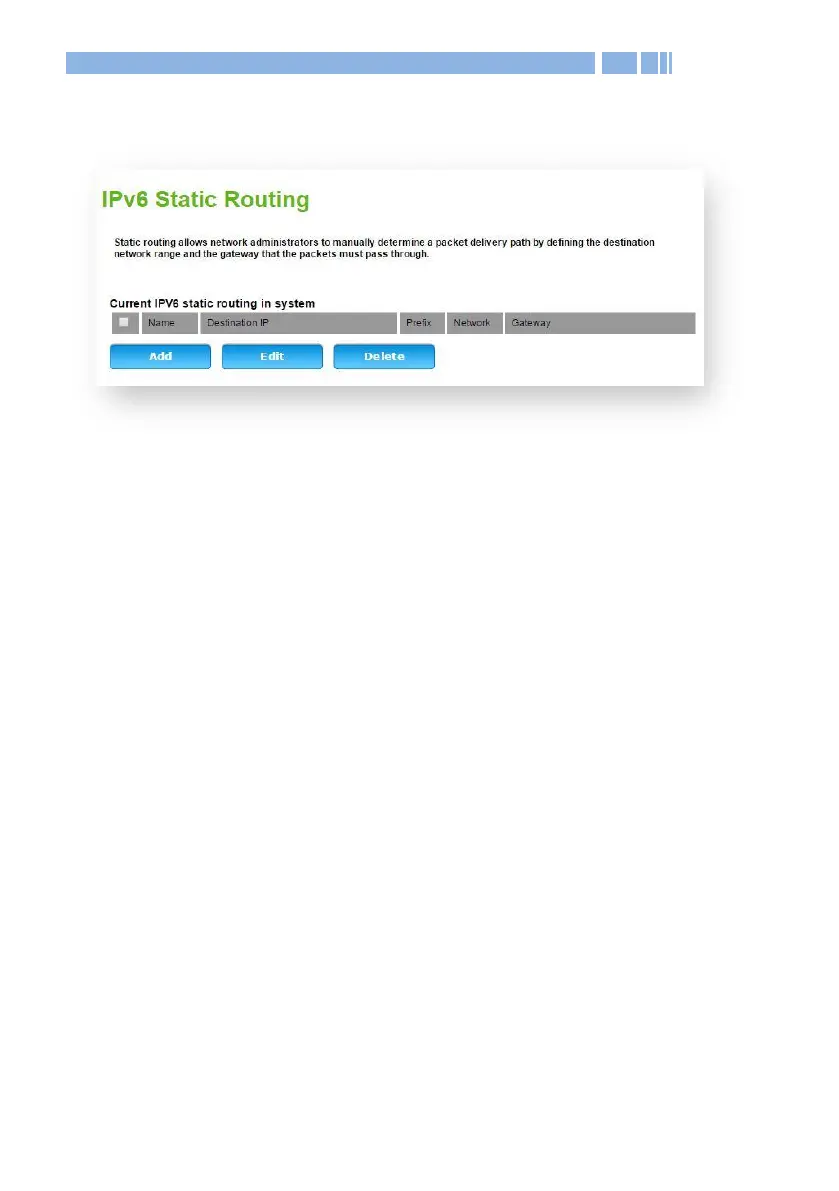 Click Add to add an IPv6 static route. Select an item and click Edit to