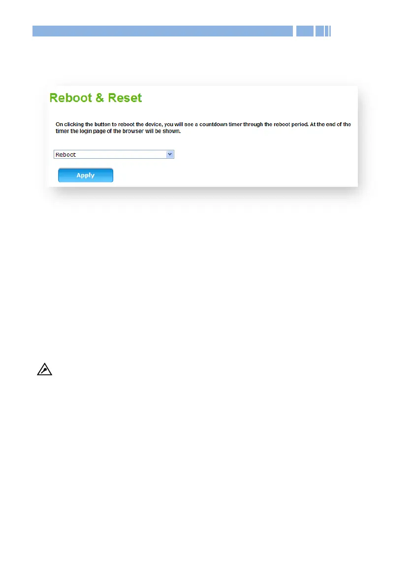 Reboot: Select Reboot and click Apply; a countdown timer will appear