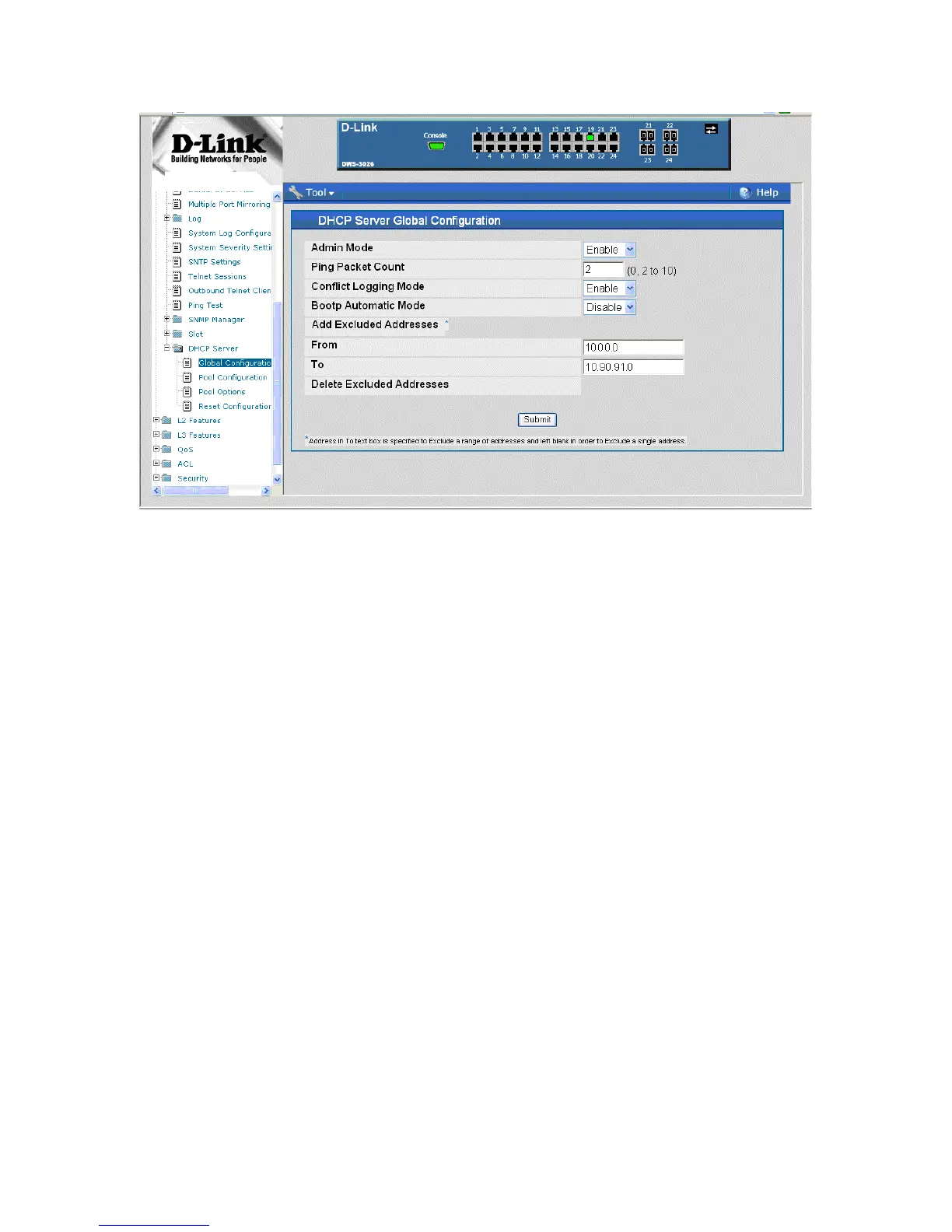 This section describes how to configure the address pool for the wireless clients.