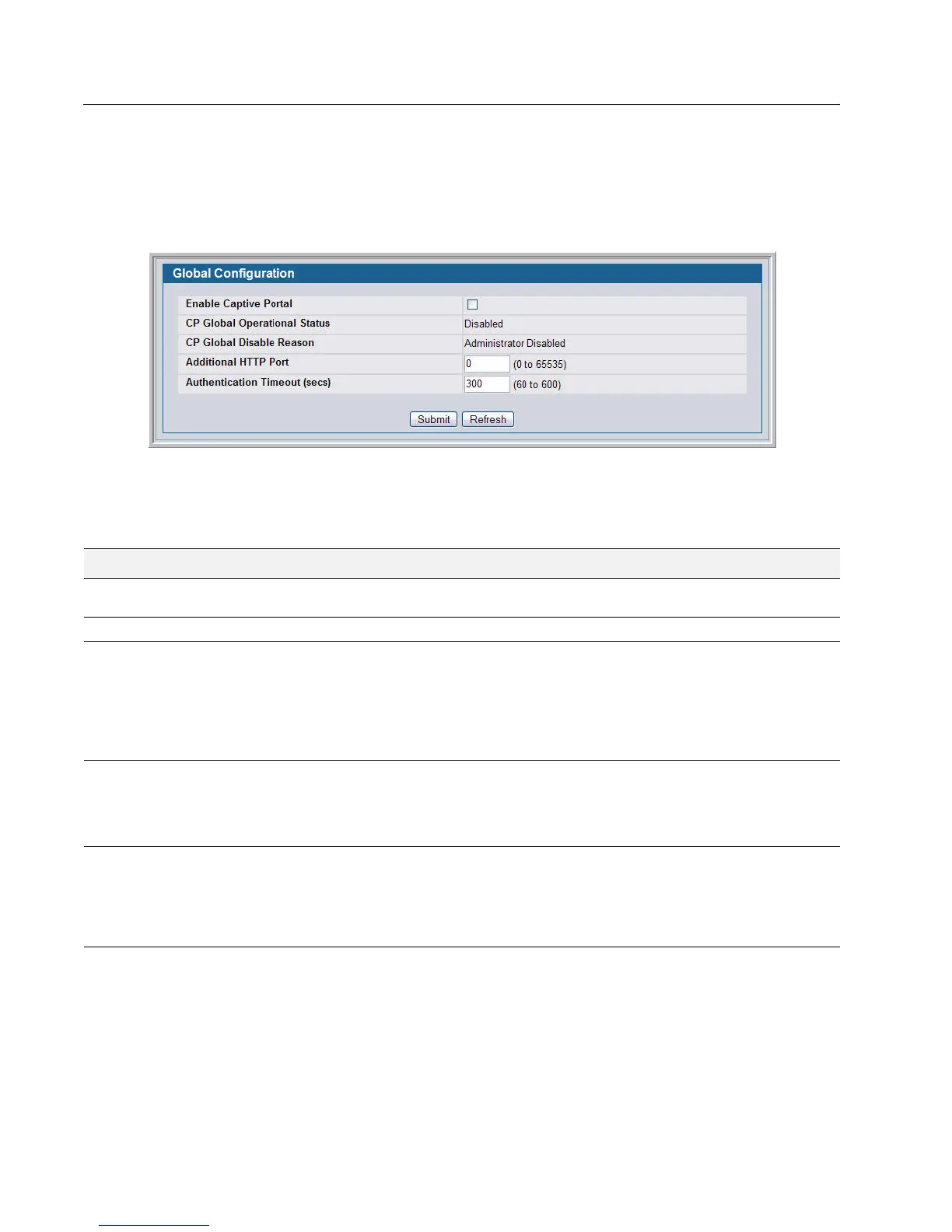 Table 61: Global Captive Portal Configuration