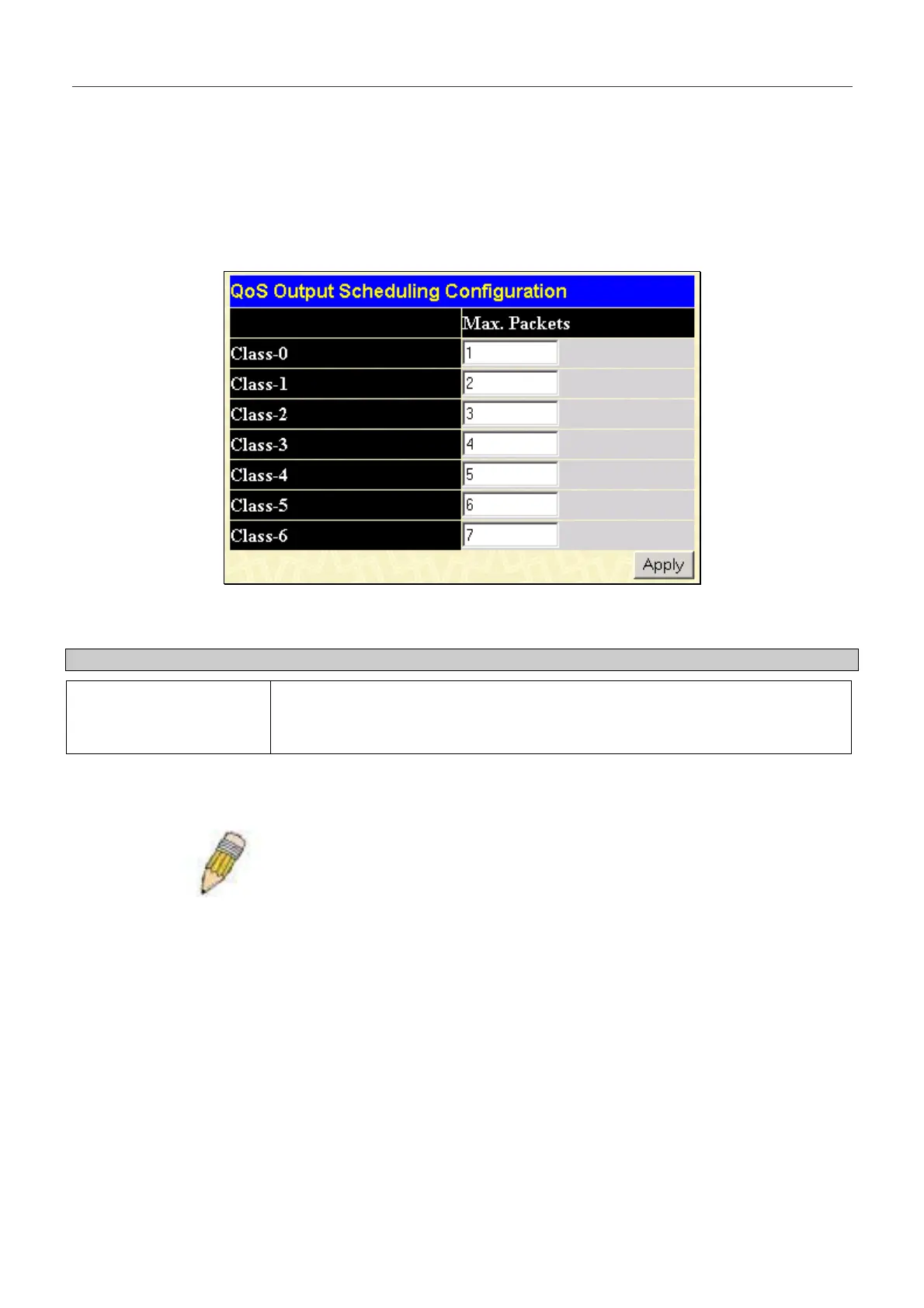 NOTE: Entering a 0 for the Max Packets field in the QoS Output Scheduling