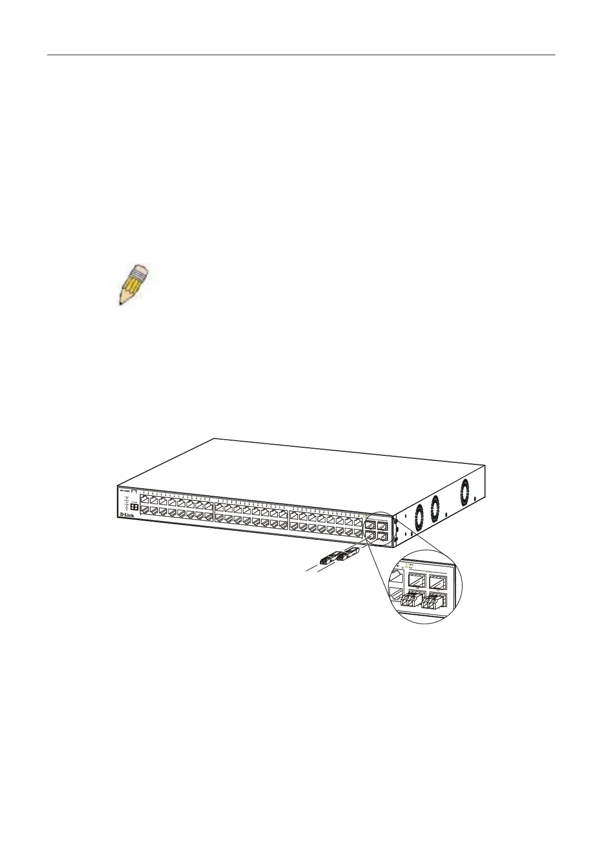 Figure 1- 1. Inserting the fibe-optic transceivers into the DXS-3350SR