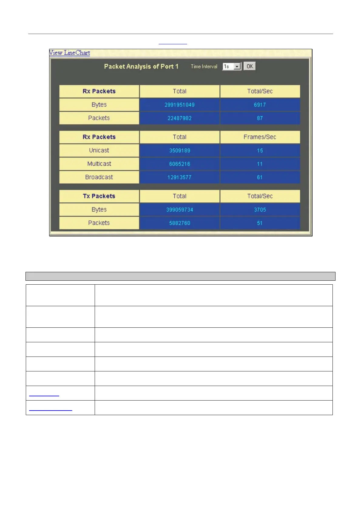View Line Chart Clicking this button instructs the Switch to display a line graph rather than a table.