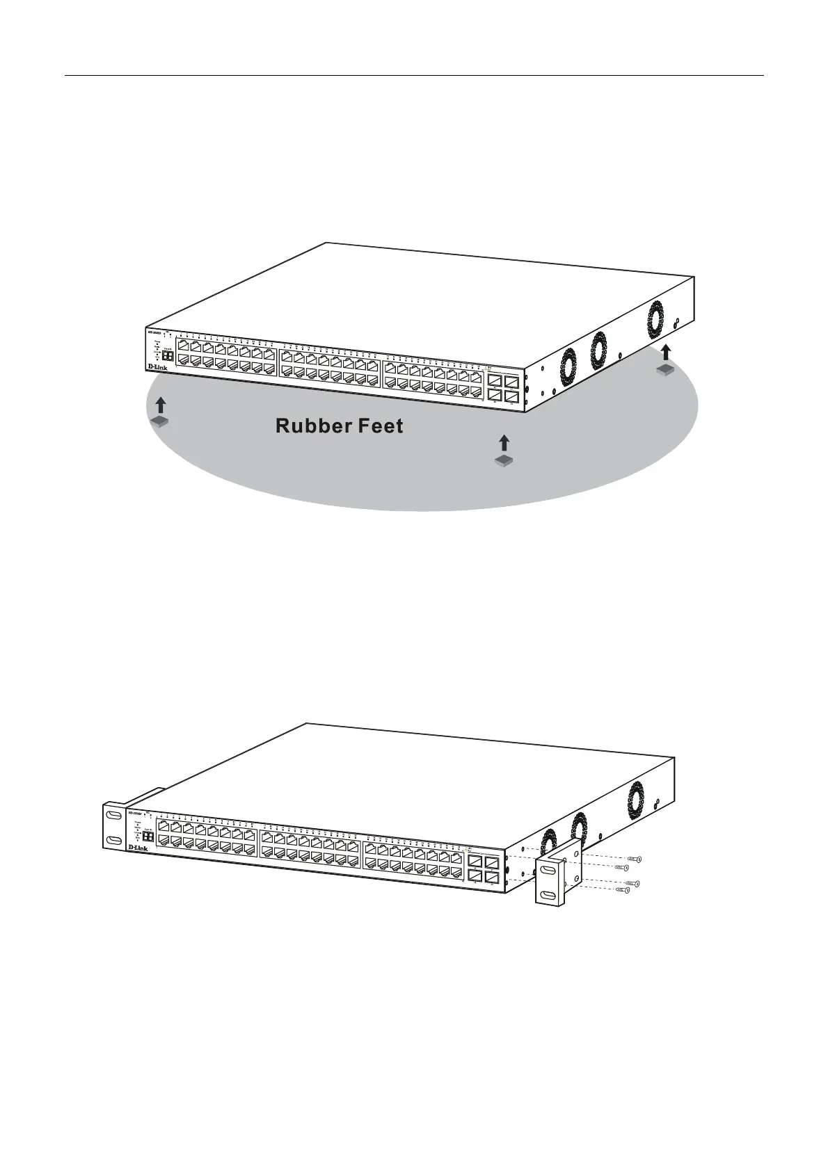 When installing the Switch on a desktop or shelf, the rubber feet included with the Switch should first be attached. Attach