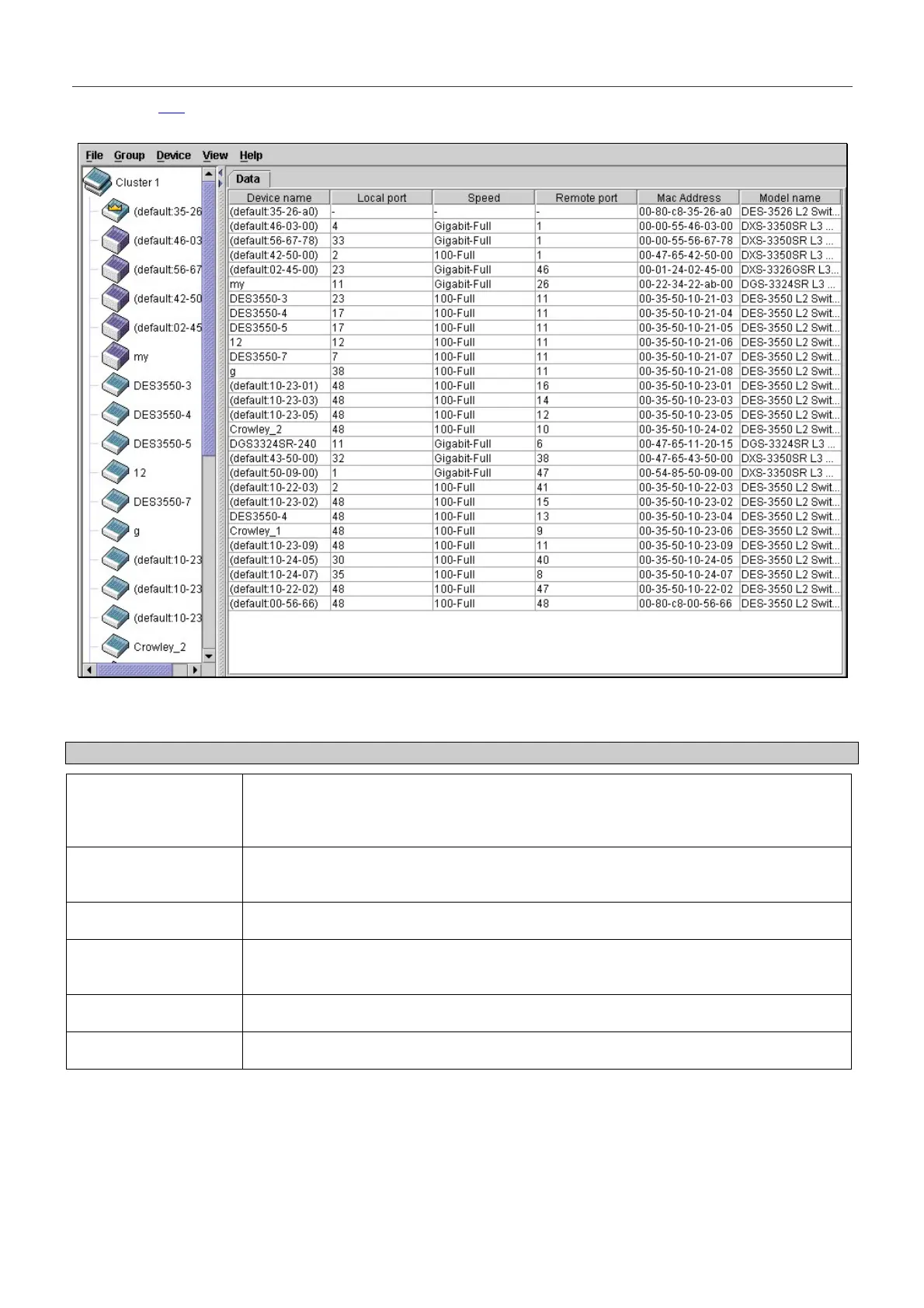 Displays the MAC Address of the corresponding Switch.