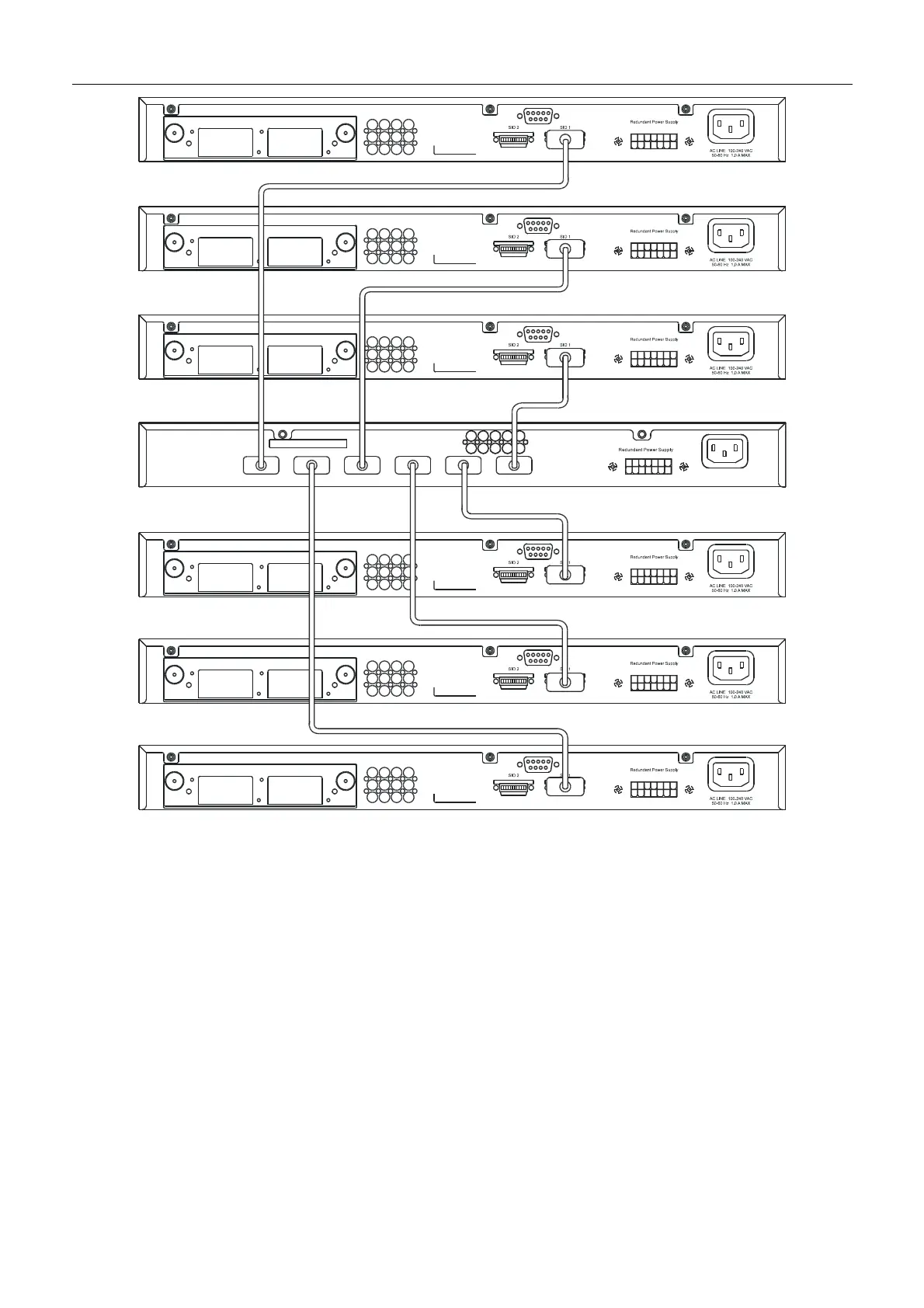 For stacking the in a ring architecture, both SIO ports will be in use, as shown in the following diagram. Up to eight