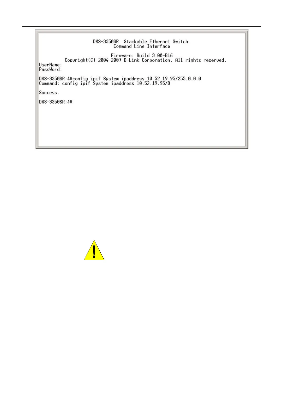 message Success indicates that the command was executed successfully. The Switch can now be configured and managed