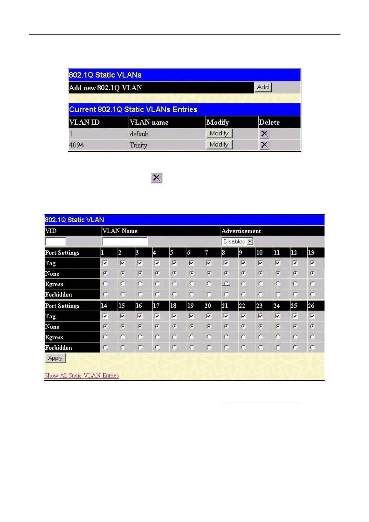 To return to the Current 802.1Q Static VLANs Entries window, click the Show All Static VLAN Entries
