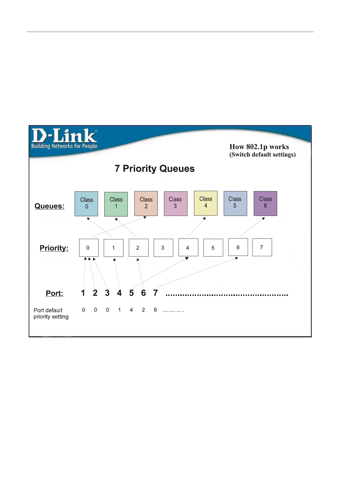 The DXS-3350SR supports 802.1p priority queuing Quality of Service. The following section discusses the implementation