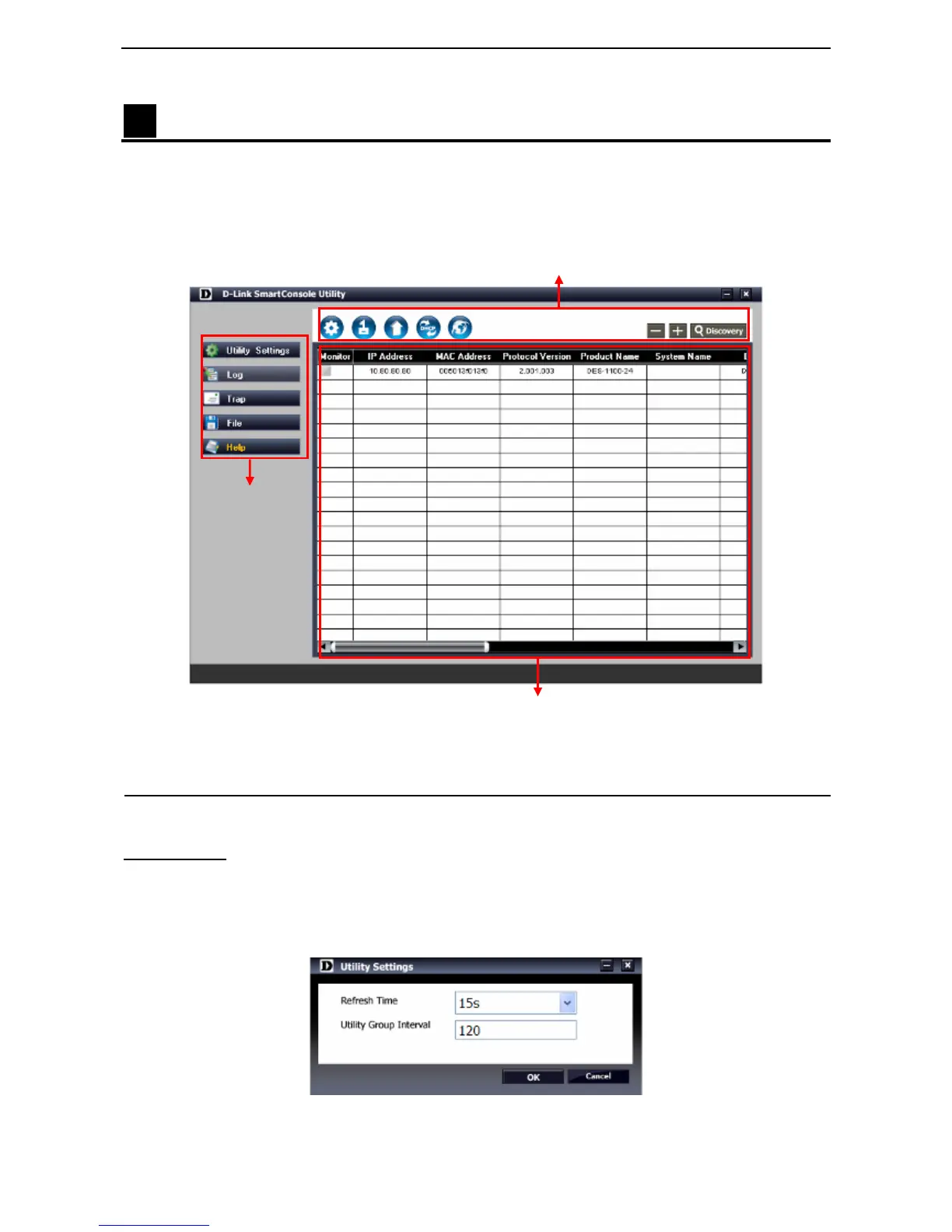 The D-Link SmartConsole Utility allows the administrator to quickly discover all D-Link Smart Switches and