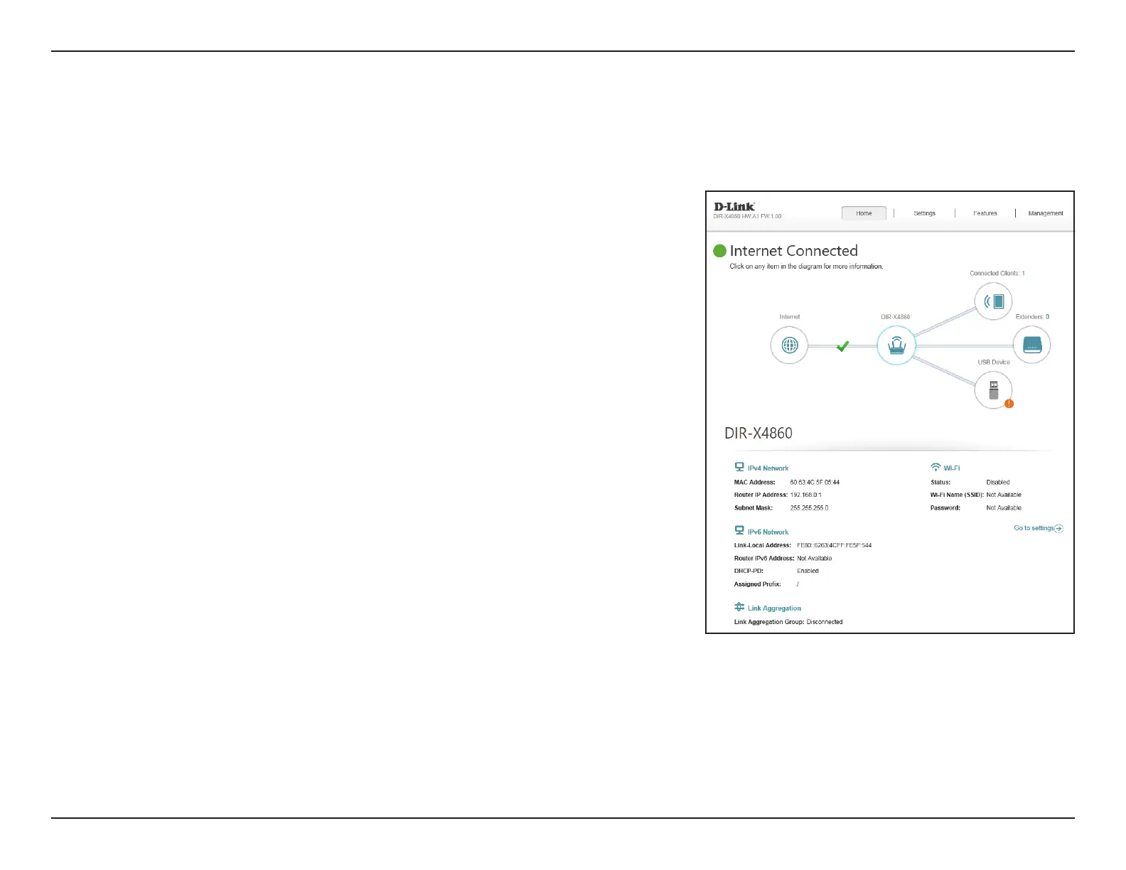 Click on the DIR-X4860 icon to view details about the router and its wireless settings.