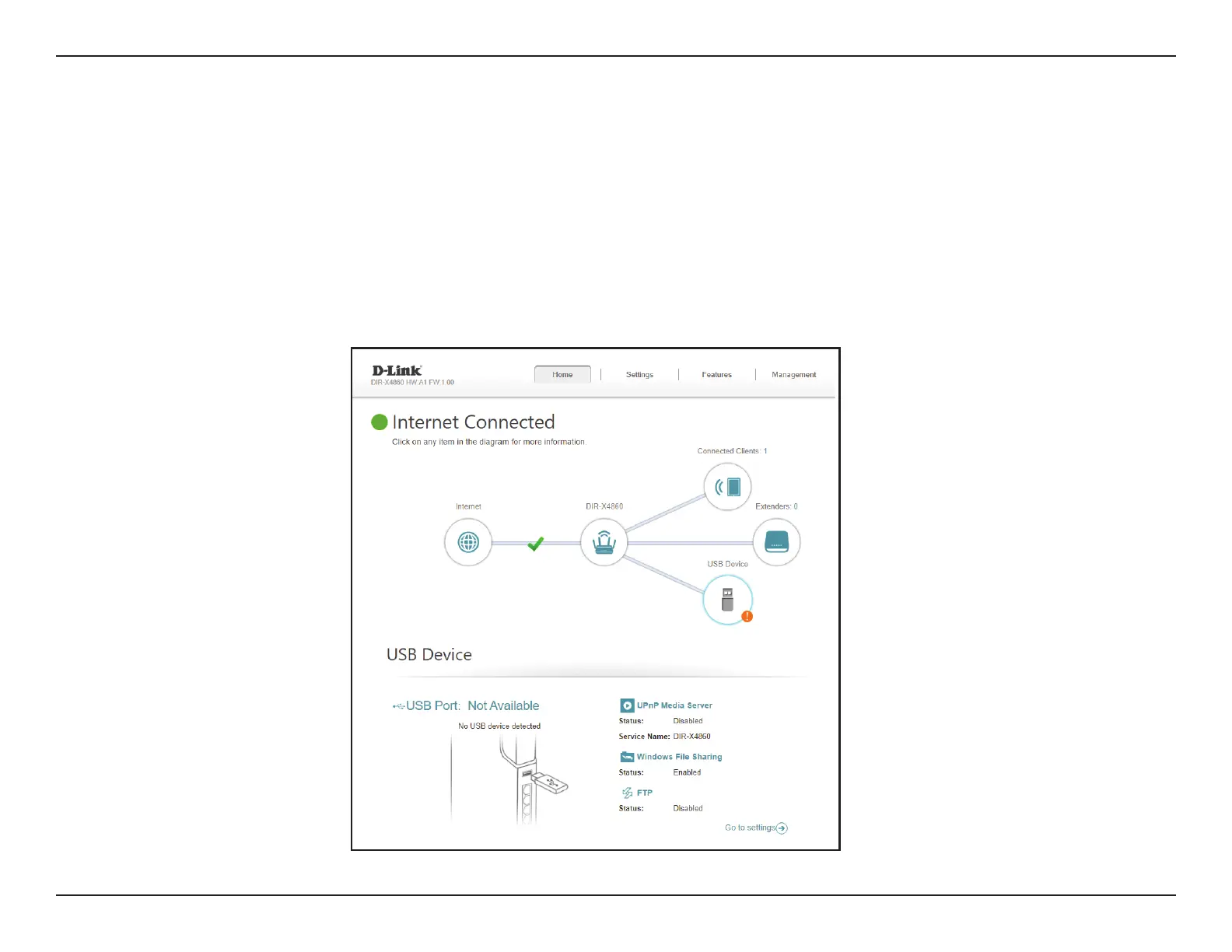 Click on the USB Device icon to view details about the currently connected USB storage device, DLNA media server,