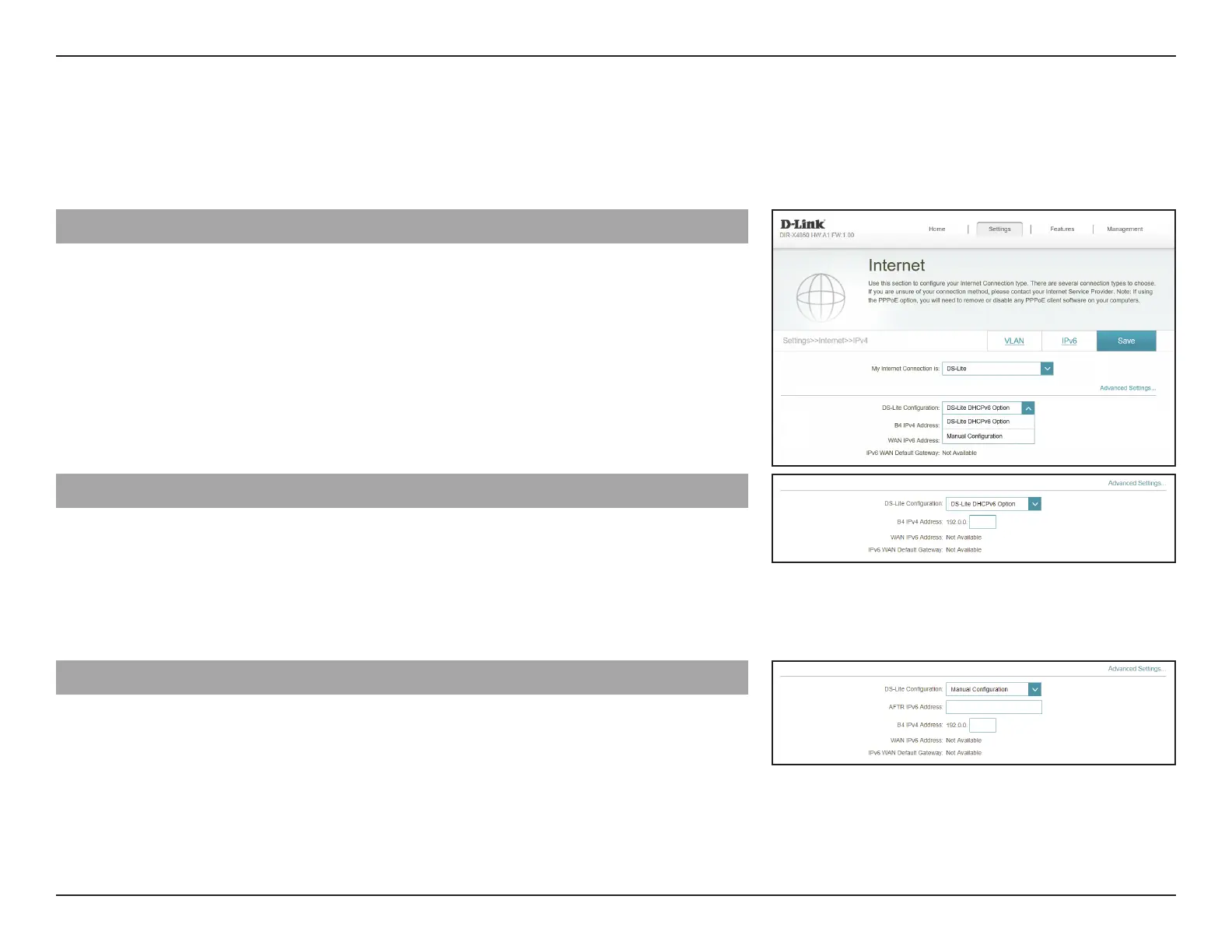 DS-Lite is an IPv6 connection type. After selecting DS-Lite, the following parameters will be available for conguration. Click