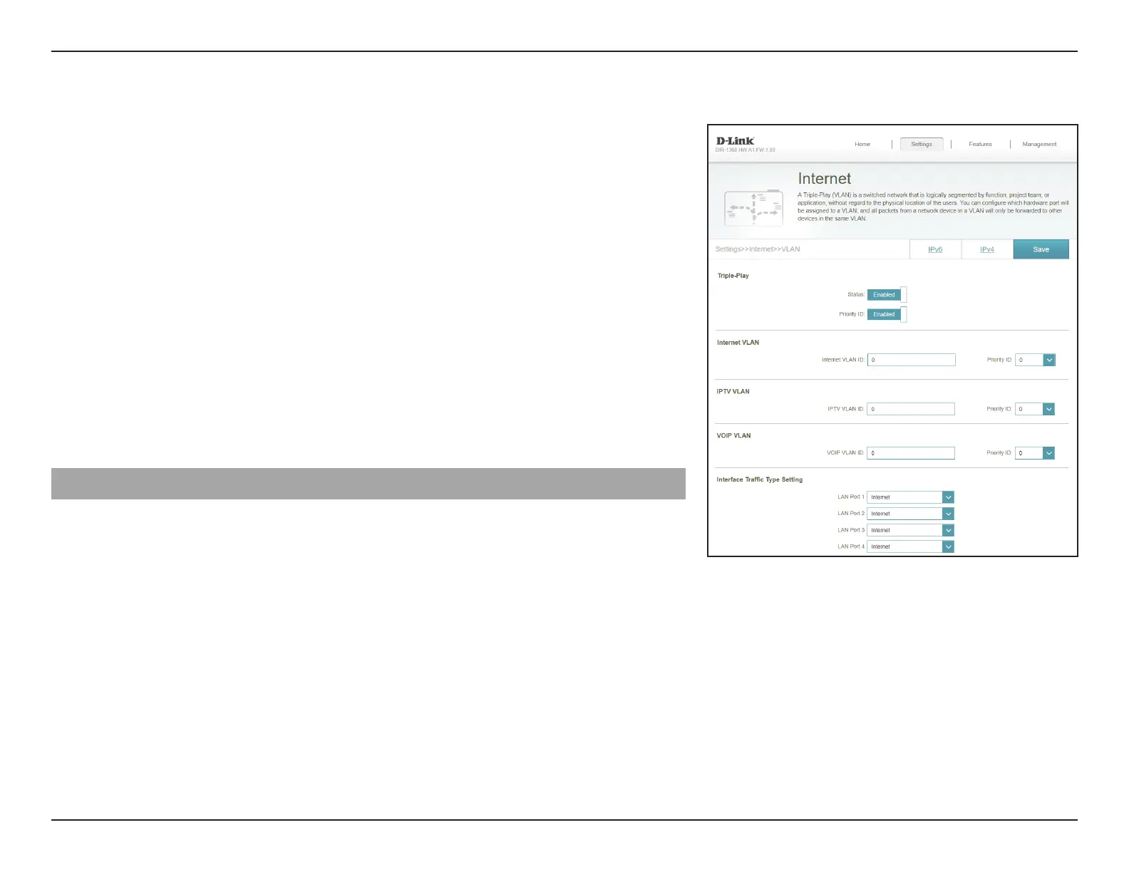 Internet VLAN ID Enter the VLAN ID for your Internet connection, as provided