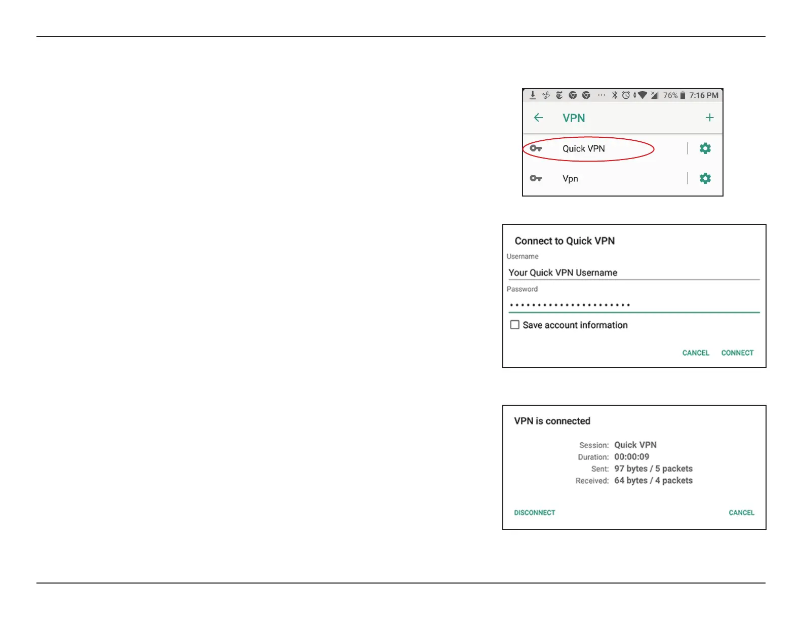 Tap the Quick VPN connection you created.