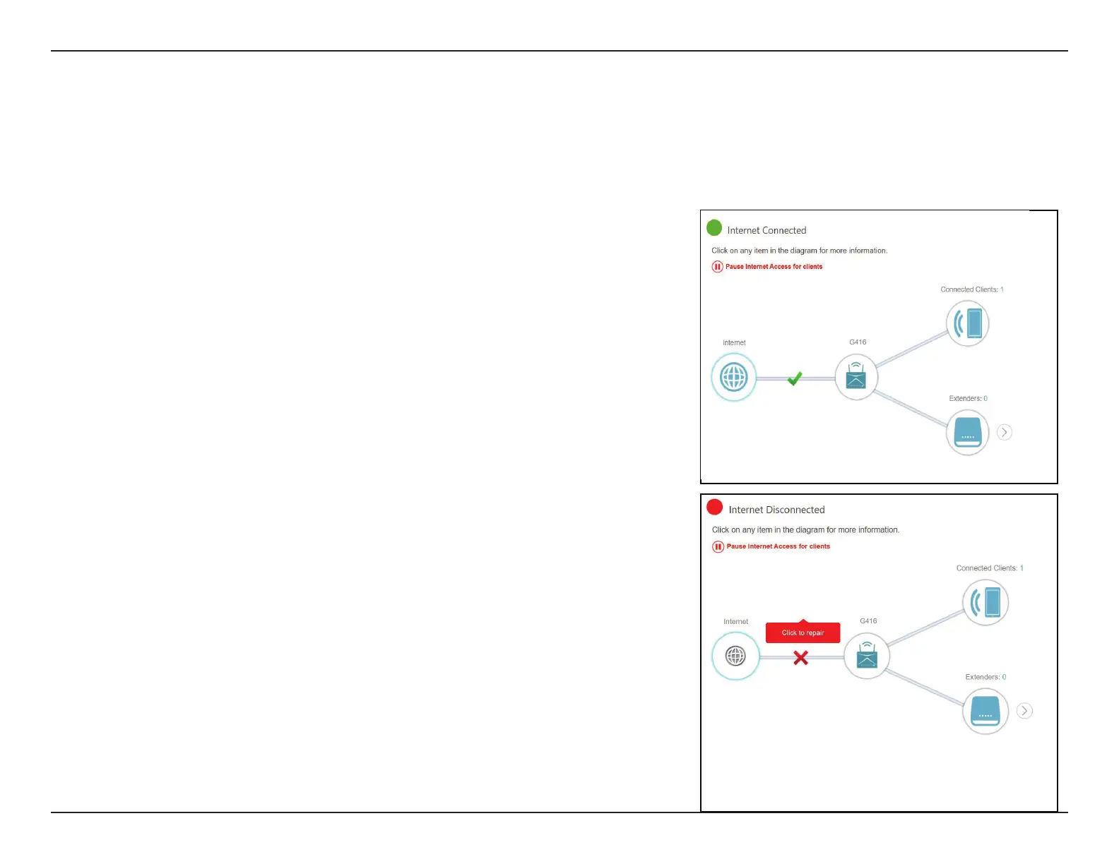If it is disconnected, click Click to repair to bring up the setup wizard, refer
