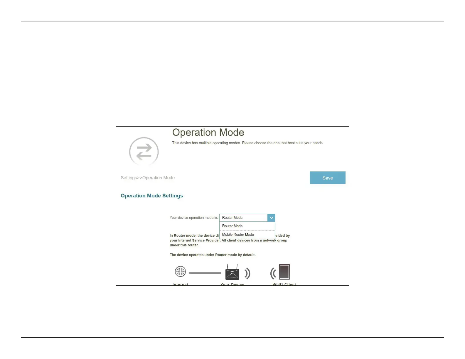 Go to Settings > Operation Mode to select your operation mode. Depending on your network architecture, you can