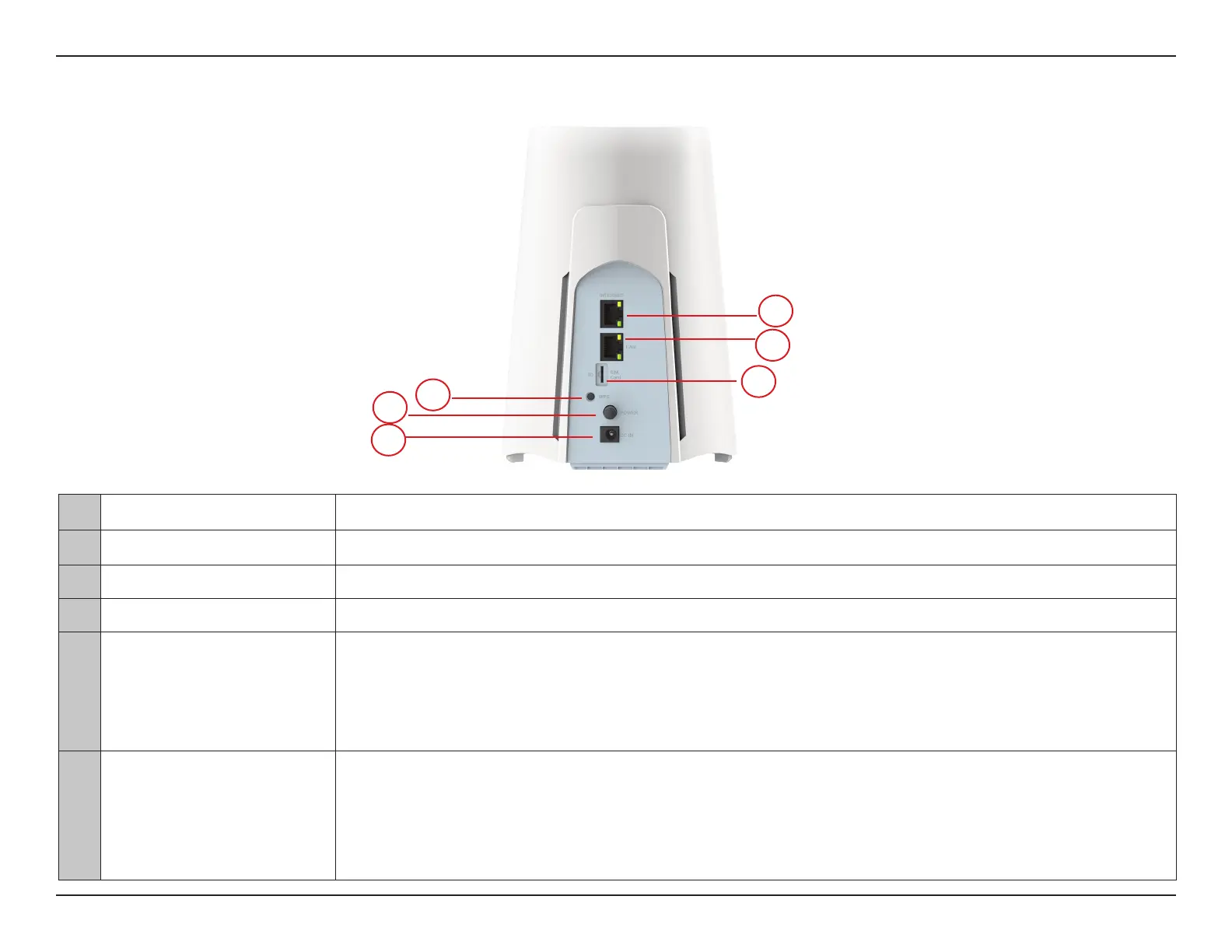 3 WPS Button Press WPS button to establish a secure Wi-Fi connection.