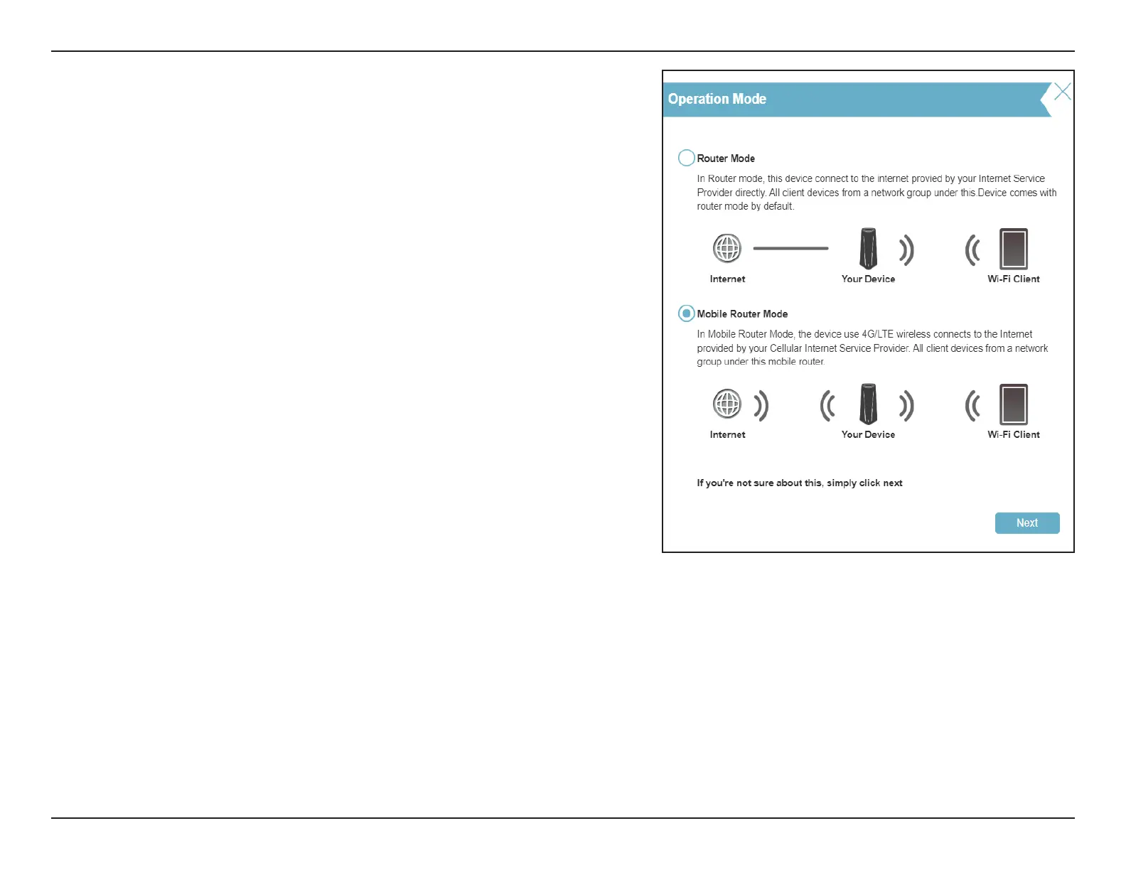set up your router's mode. Select Router Mode to congure