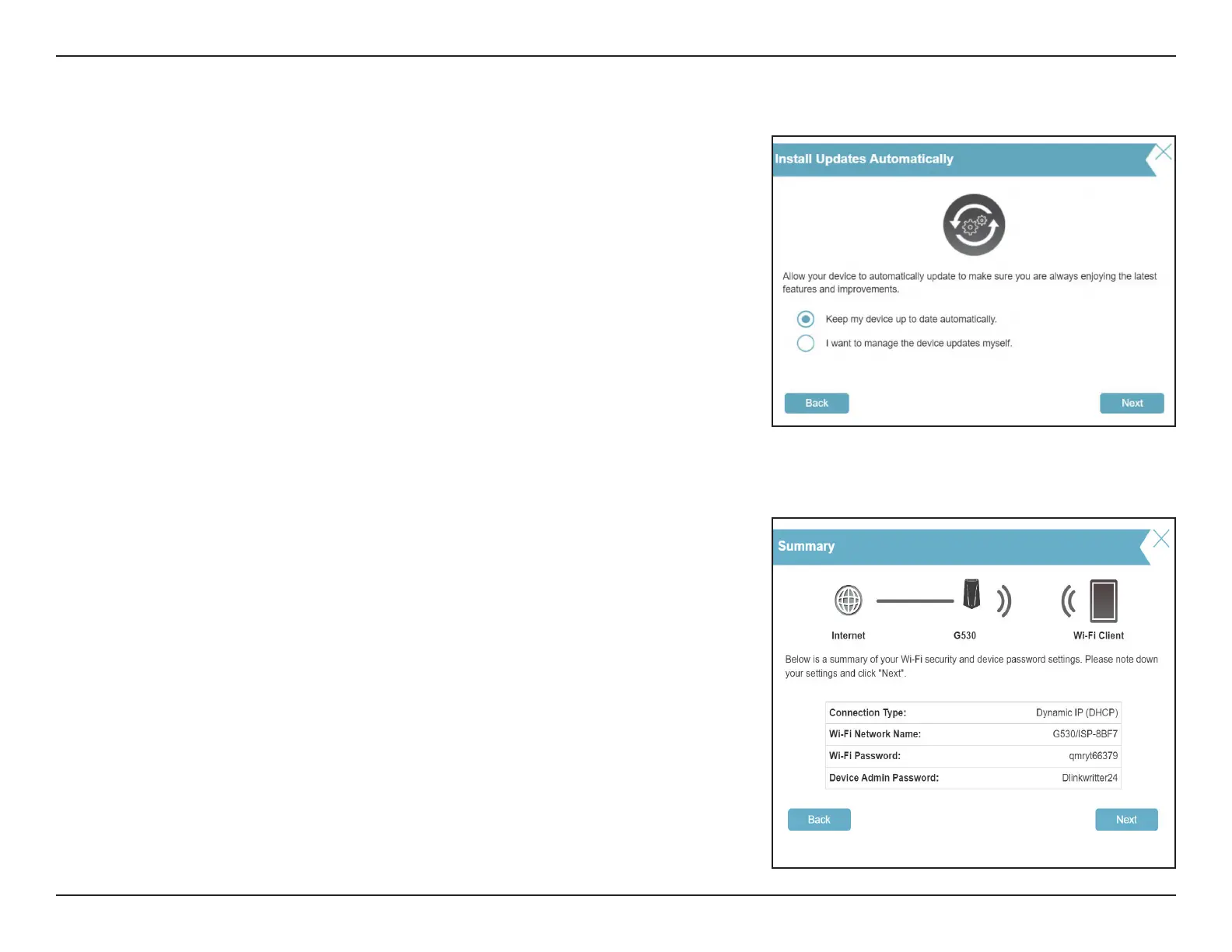 Click Next to apply the settings or Back to make changes.