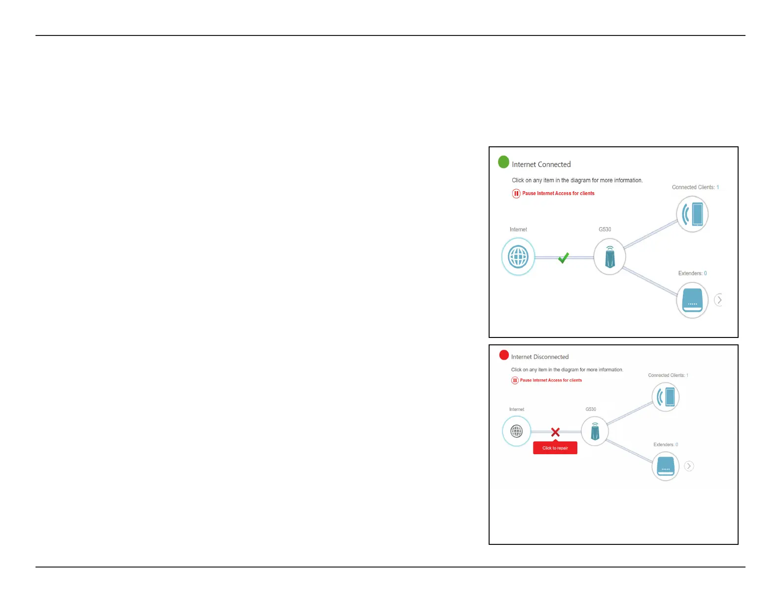 If it is disconnected, click Click to repair to bring up the setup wizard, refer