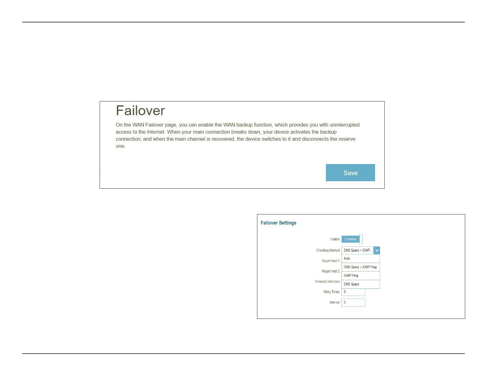 When Failover is enabled, the following options will appear.