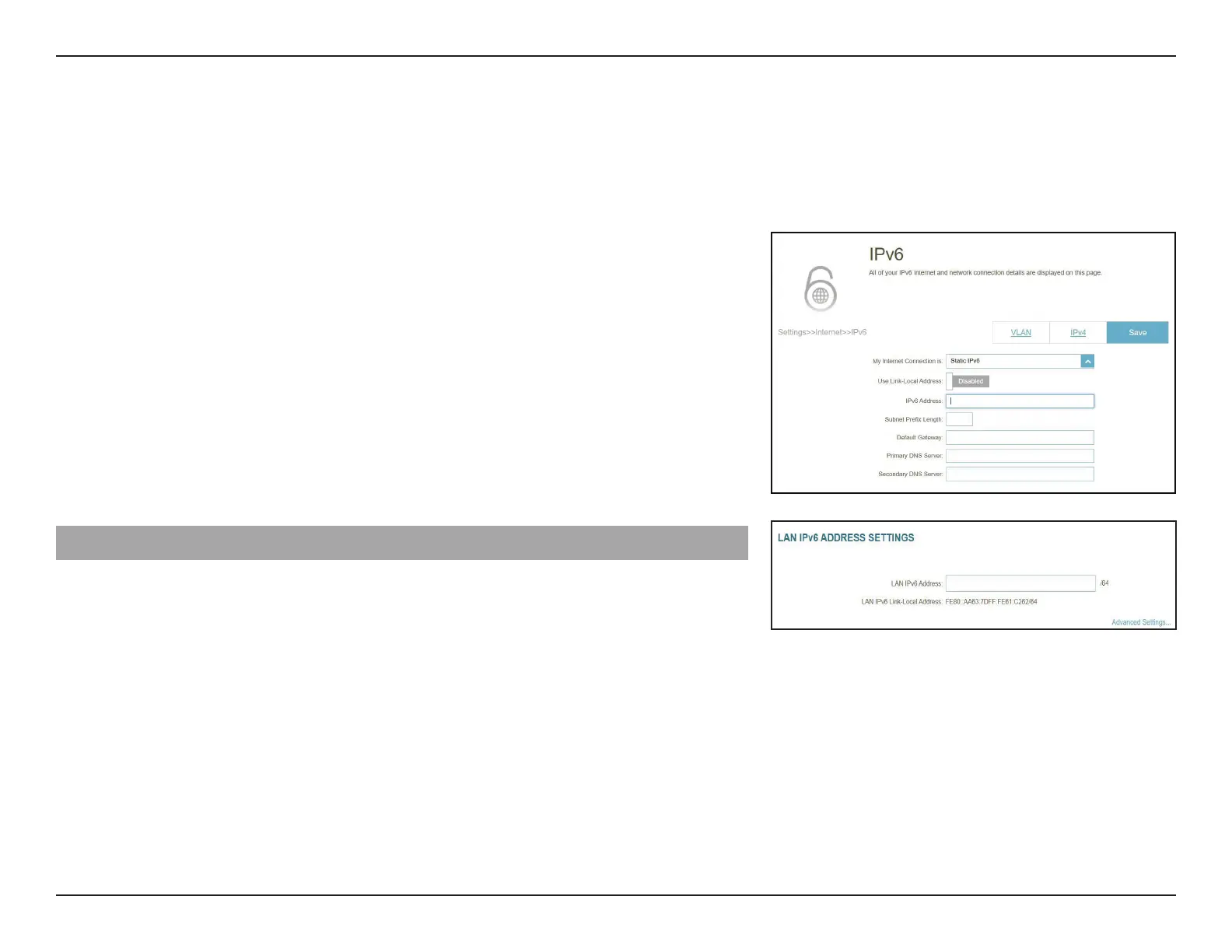 LAN IPv6 Address Settings